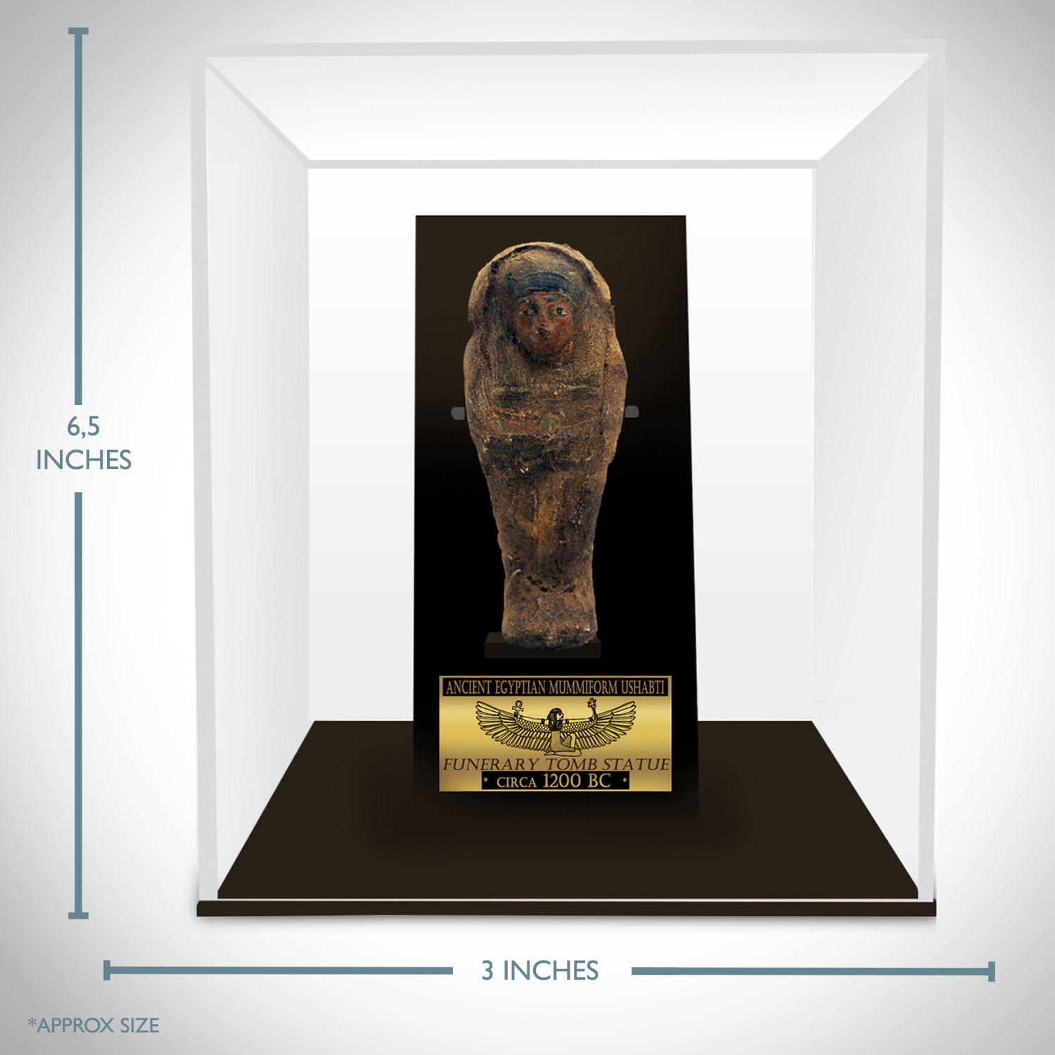 Ushabti figures were placed in ancient Egyptian tombs in order to serve the deceased in the afterlife. It's protected under plexiglass in a custom display to keep it looking pristine, ensuring protection of your investment while allowing you to fully appreciate this piece of collectible ancient history. The customized descriptive metallic plaque, in addition to the detailed finishing, add to the elegant, gallery quality look. Complete with a certificate of authenticity, this piece is an investment that will only get better with age.