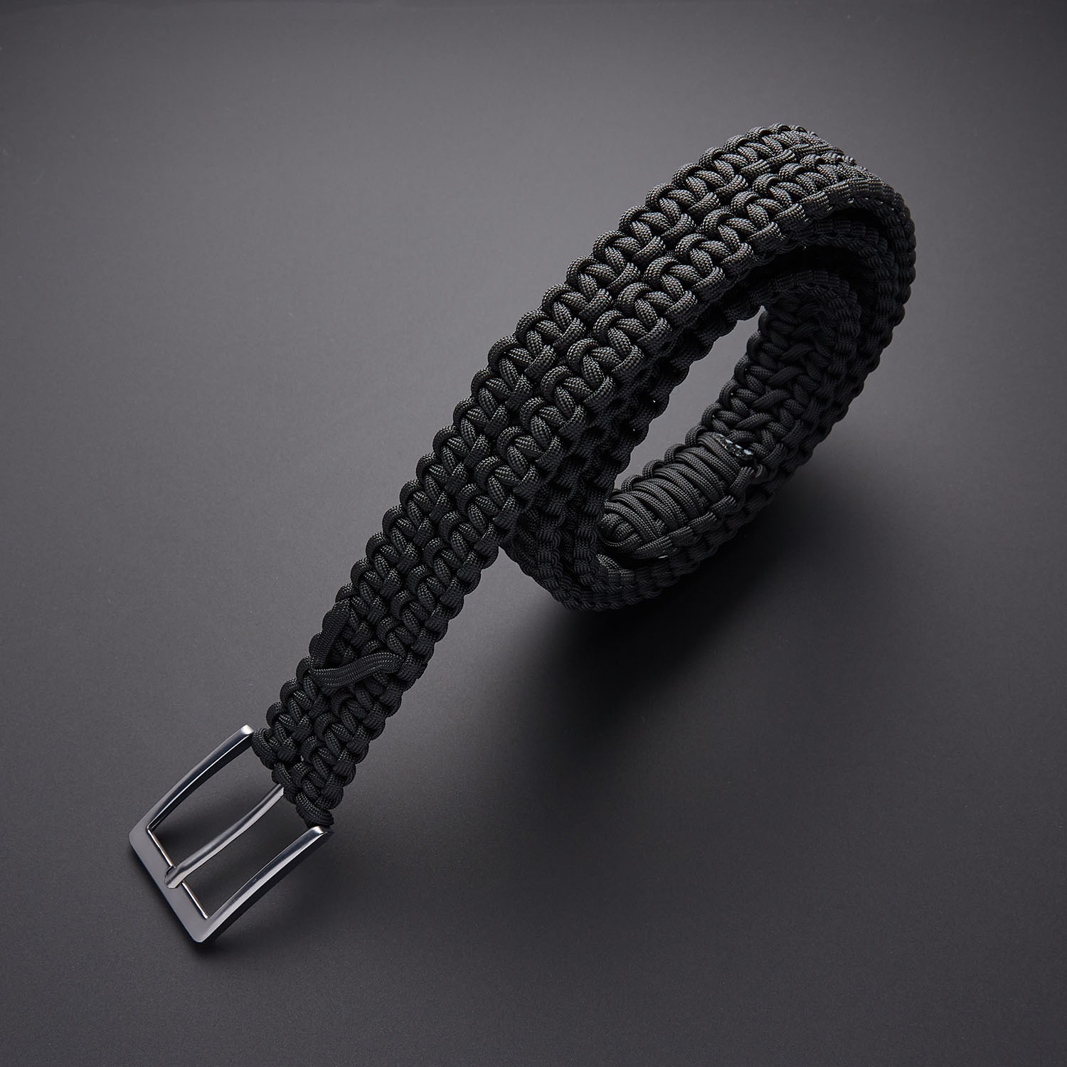 Get the look, feel, and reliability of a traditional pin-style belt, while staying prepared to handle any emergency with the RattlerStrap Gun Metal Belt. This impressive belt adds 80+ feet of ultra strong and durable, hand woven 550 utility cord to your everyday carry. Offering a secure fit with no hole punching or cinching, each belt is handmade in a weave pattern that makes it infinitely-adjustable and possible to unwind in any survival or emergency situation.