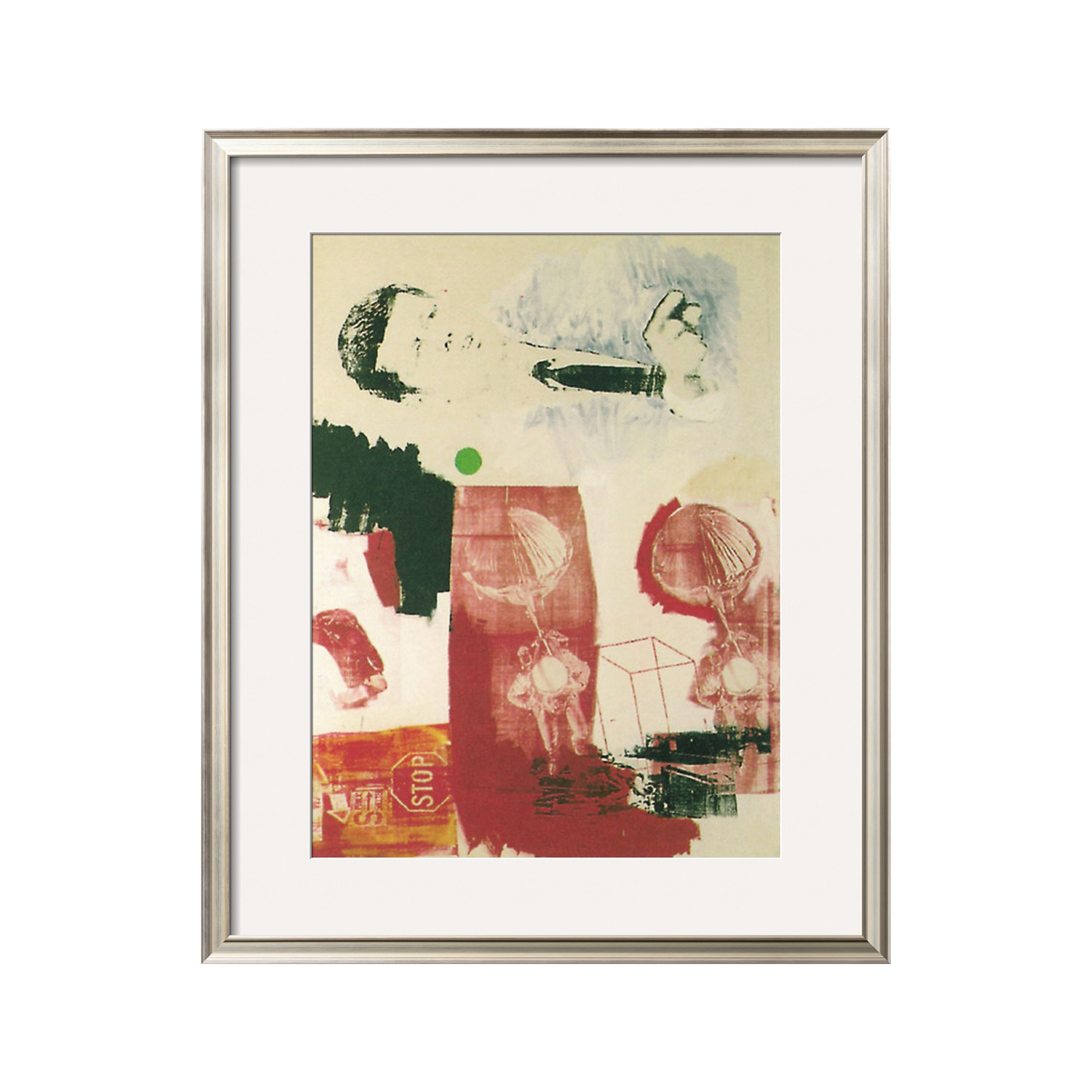 Robert Rauschenberg (1925 – 2008) was a groundbreaking Pop Artist whose visionary work revolutionized the course of American and European art. Rauschenberg had a voracious appetite for experimentation with new techniques and unique materials; he embraced silk screening, digital imagery and set design though his most acclaimed creations were “combines,” giant three-dimensional works that paired paint with objects he found on the street, such as scraps of clothing, tires, furniture and cardboard. Rauschenberg’s work re-established the beauty of cast-off items, and solidified him as a pivotal figure in the Pop Art movement.