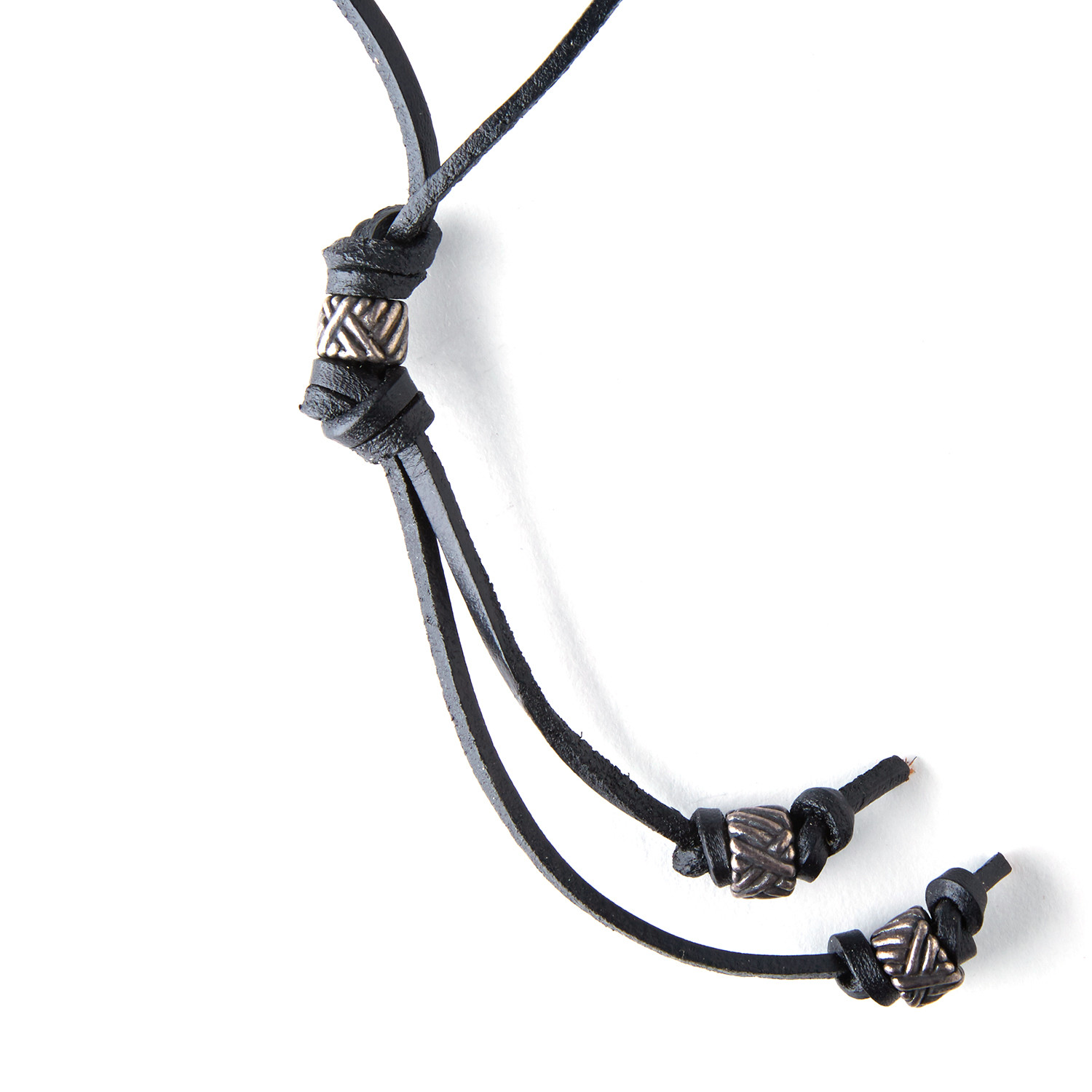 The Leather Bead Bracelet features a high-quality black leather chain which size is adjustable and 3 plated zinc beads that bring a rock cowboy touch. The style is dark and influenced by gothic and fetishism objects, to provide you with a manly and rough way to accessorize.