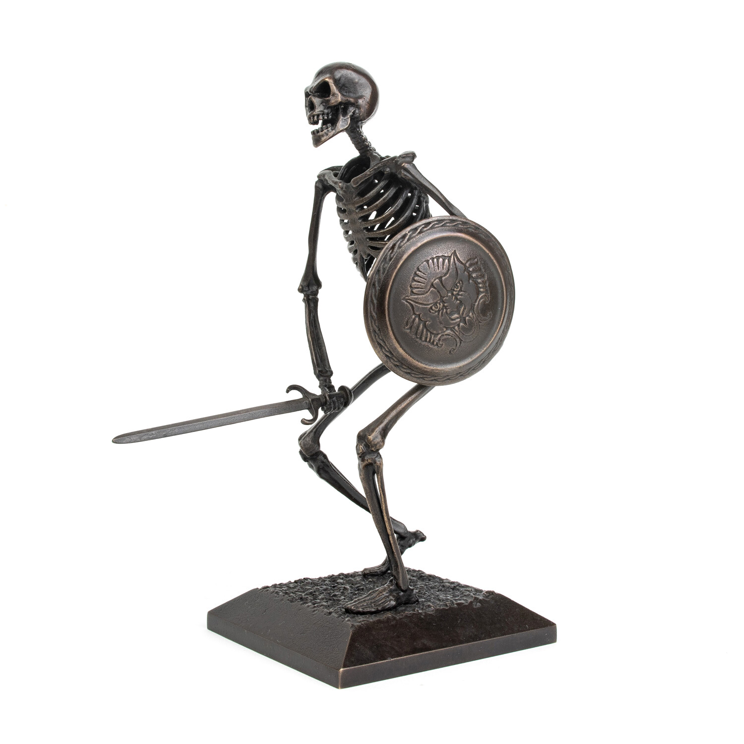 The Children of the Hydra Skeletons are amongst the most famous stop motion creatures created by Ray Harryhausen. Featured in the cult classic film Jason and the Argonauts, seven skeletons are spawned from the teeth of the slain Hydra by King Aeëtes of Colchis. Five skeletons arise from the ground wielding swords and shields, alongside two holding spears. To mark the 50th Anniversary of the 1963 release of Jason and the Argonauts, Raven Armoury, working with the Ray & Diana Harryhausen Foundation, have produced a limited edition of miniature skeletons based on original artwork by Ray Harryhausen.