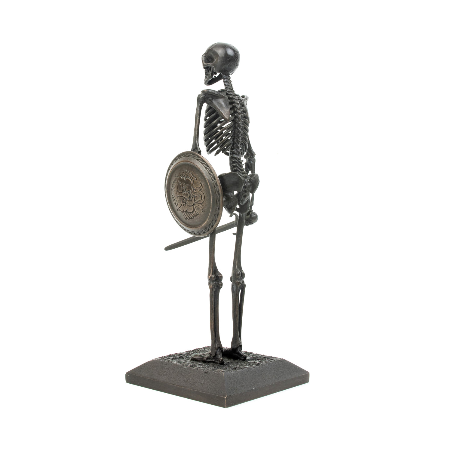The Children of the Hydra Skeletons are amongst the most famous stop motion creatures created by Ray Harryhausen. Featured in the cult classic film Jason and the Argonauts, seven skeletons are spawned from the teeth of the slain Hydra by King Aeëtes of Colchis. Five skeletons arise from the ground wielding swords and shields, alongside two holding spears. To mark the 50th Anniversary of the 1963 release of Jason and the Argonauts, Raven Armoury, working with the Ray & Diana Harryhausen Foundation, have produced a limited edition of miniature skeletons based on original artwork by Ray Harryhausen.