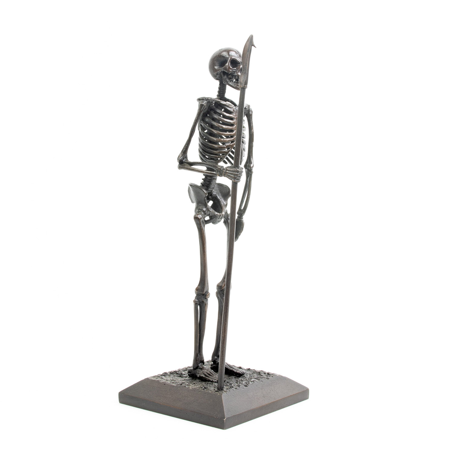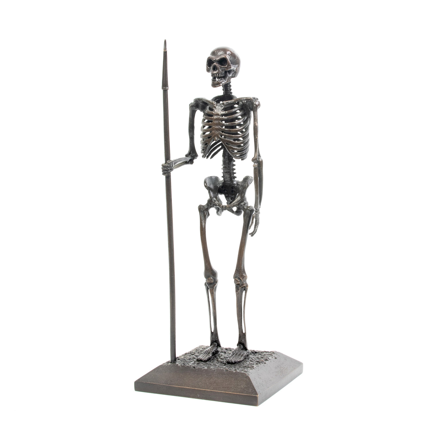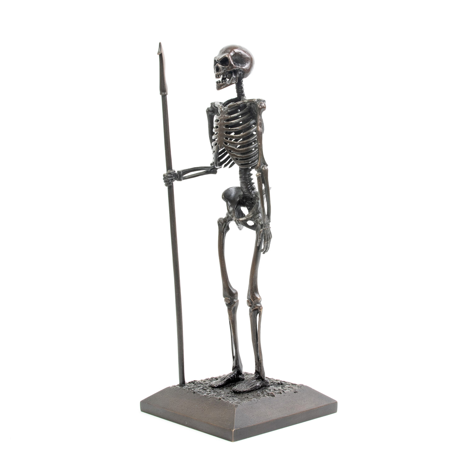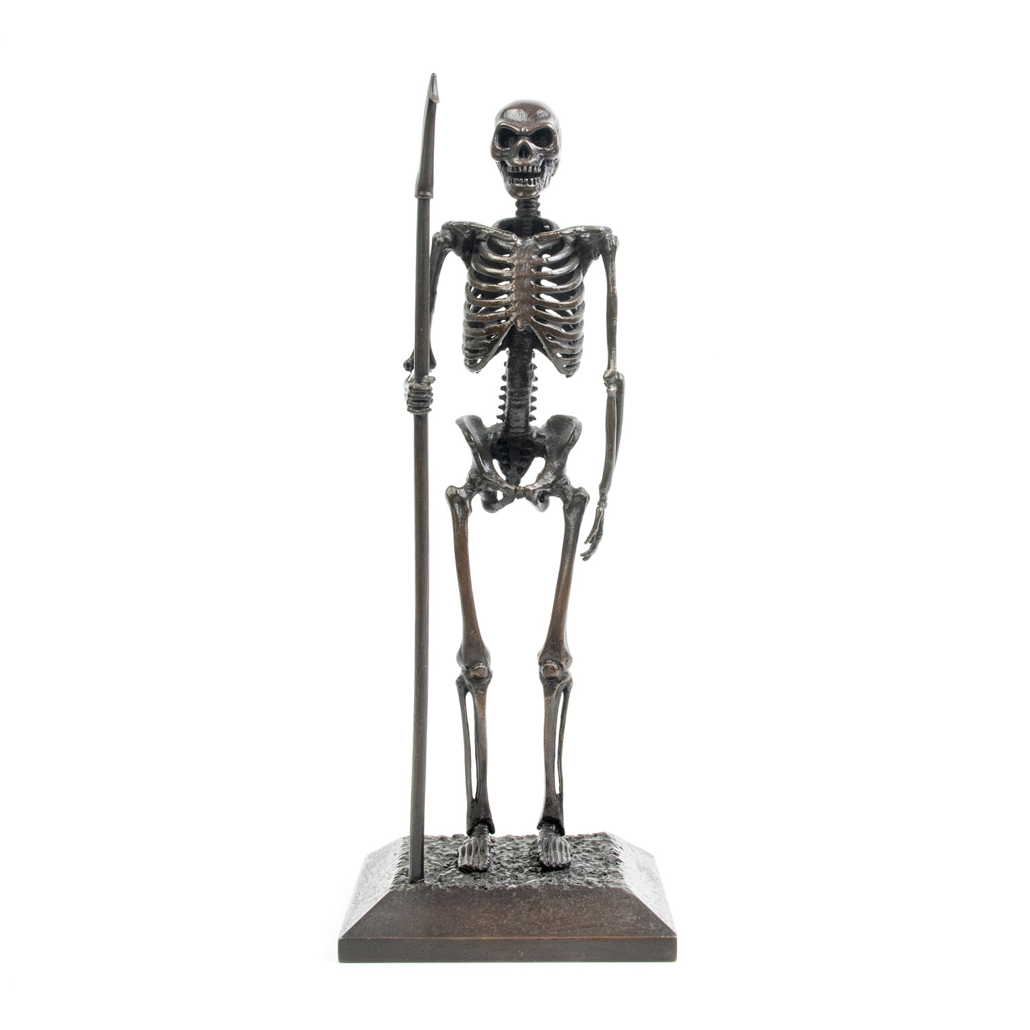 The skeletons are approximately one tenth life size and would be seven inches tall if standing upright. Each sculpture is hand-made, carefully assembled bone by bone in wax then lost-wax cast into bronze.