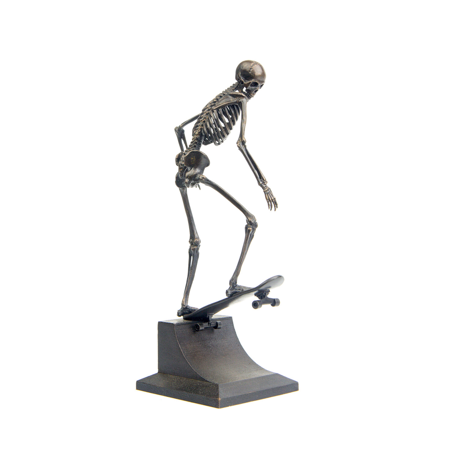 Individually handcrafted bone by bone, this collection of miniature skeleton sculptures are cast in bronze using the ancient art of lost-wax casting. From a limited edition, each skeleton is a unique, spooky addition to your home or office decor.