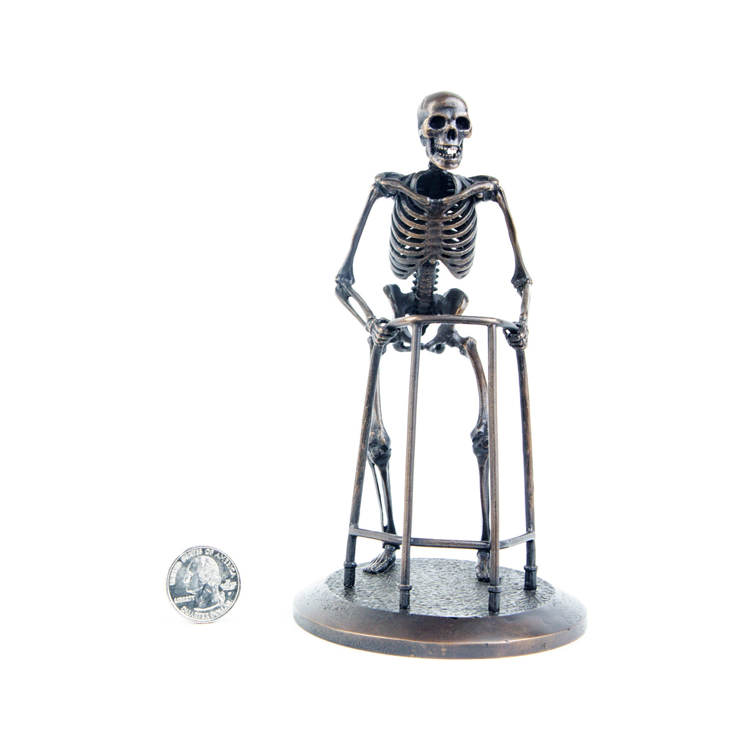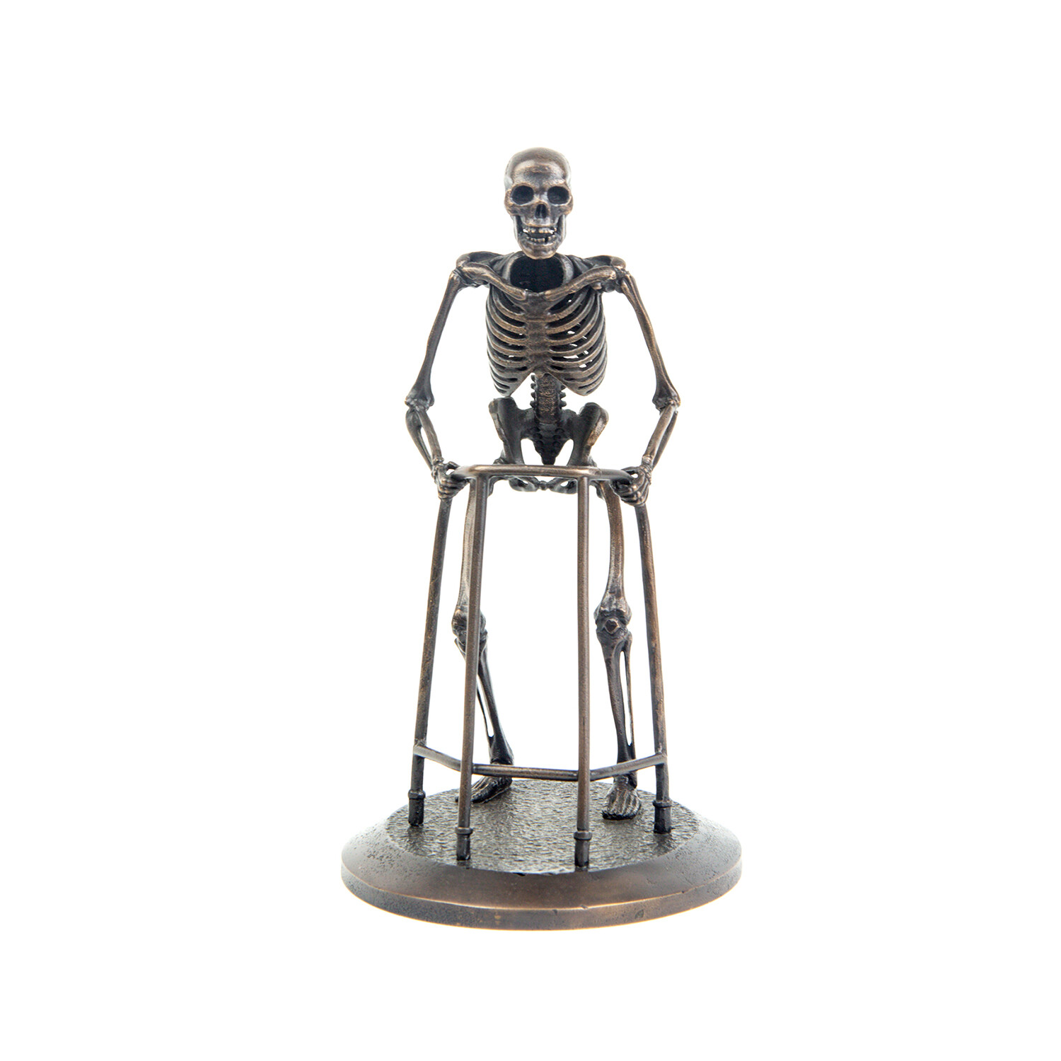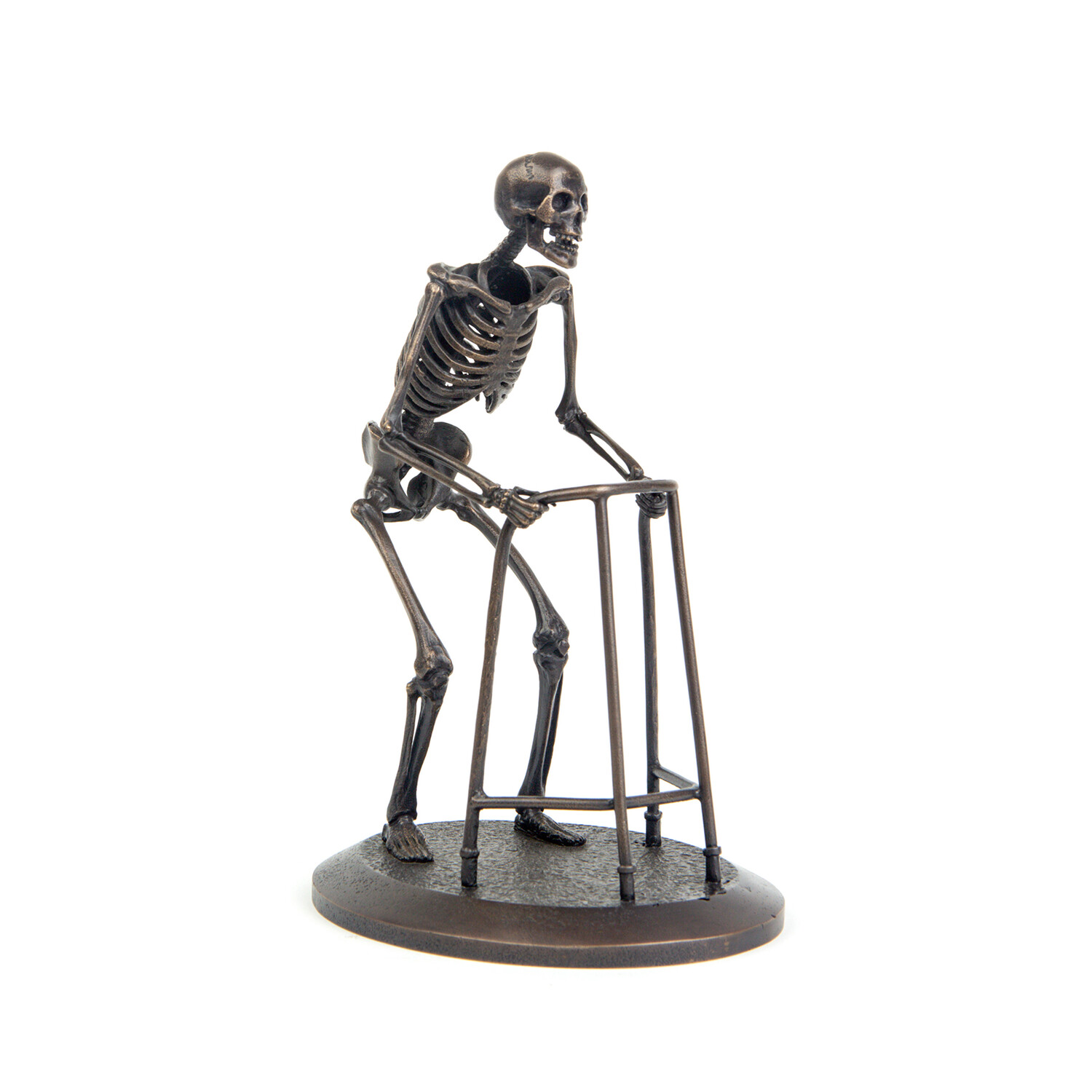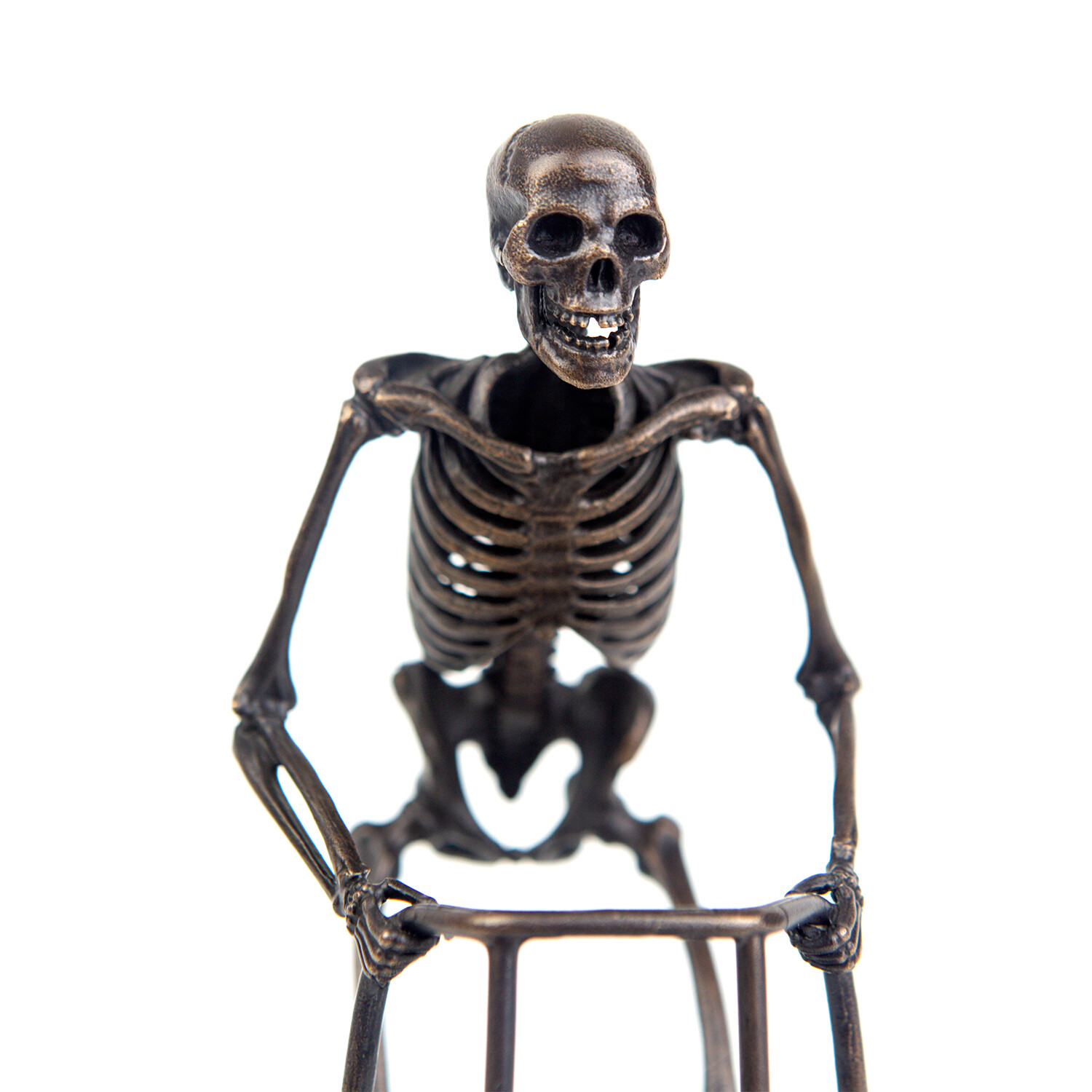 Individually handcrafted bone by bone, this collection of miniature skeleton sculptures are cast in bronze using the ancient art of lost-wax casting. From a limited edition, each skeleton is a unique, spooky addition to your home or office decor.