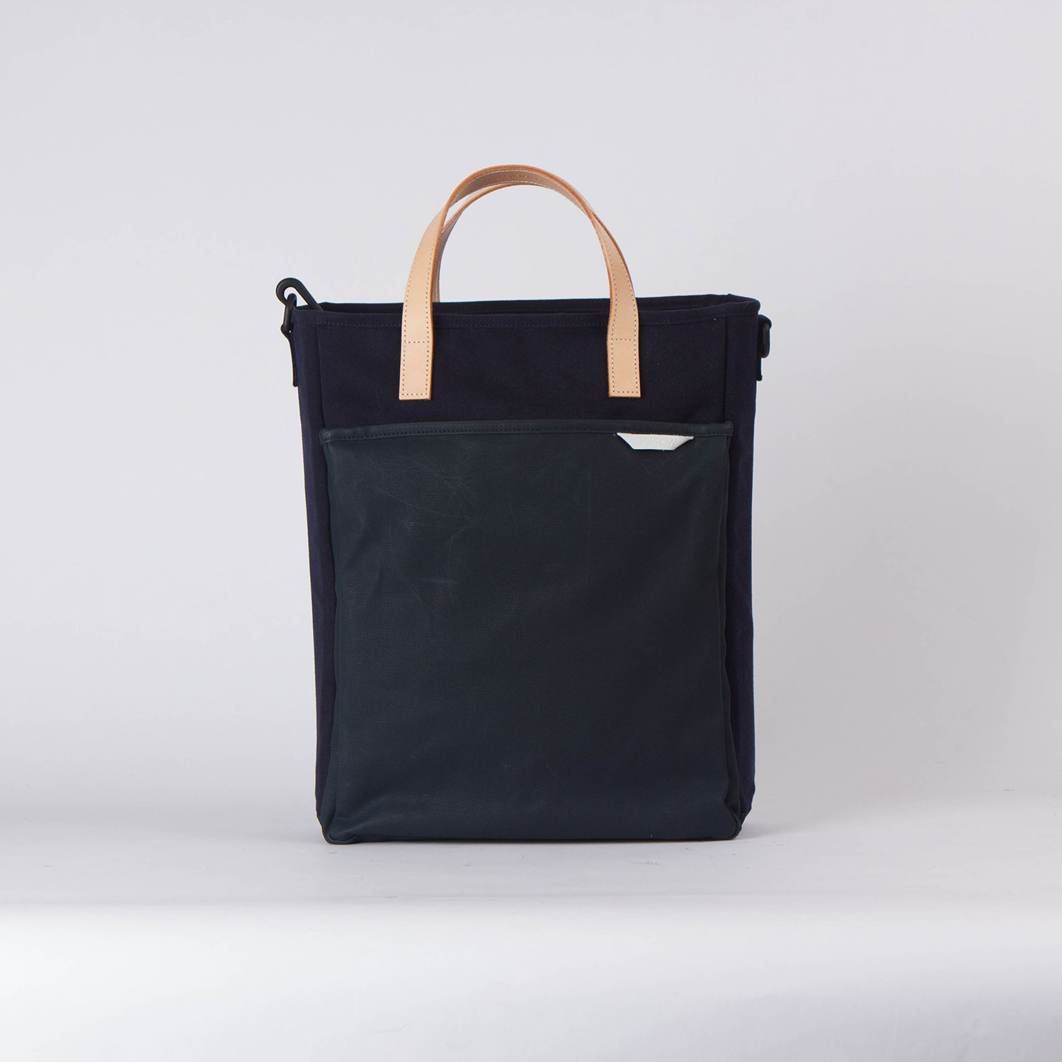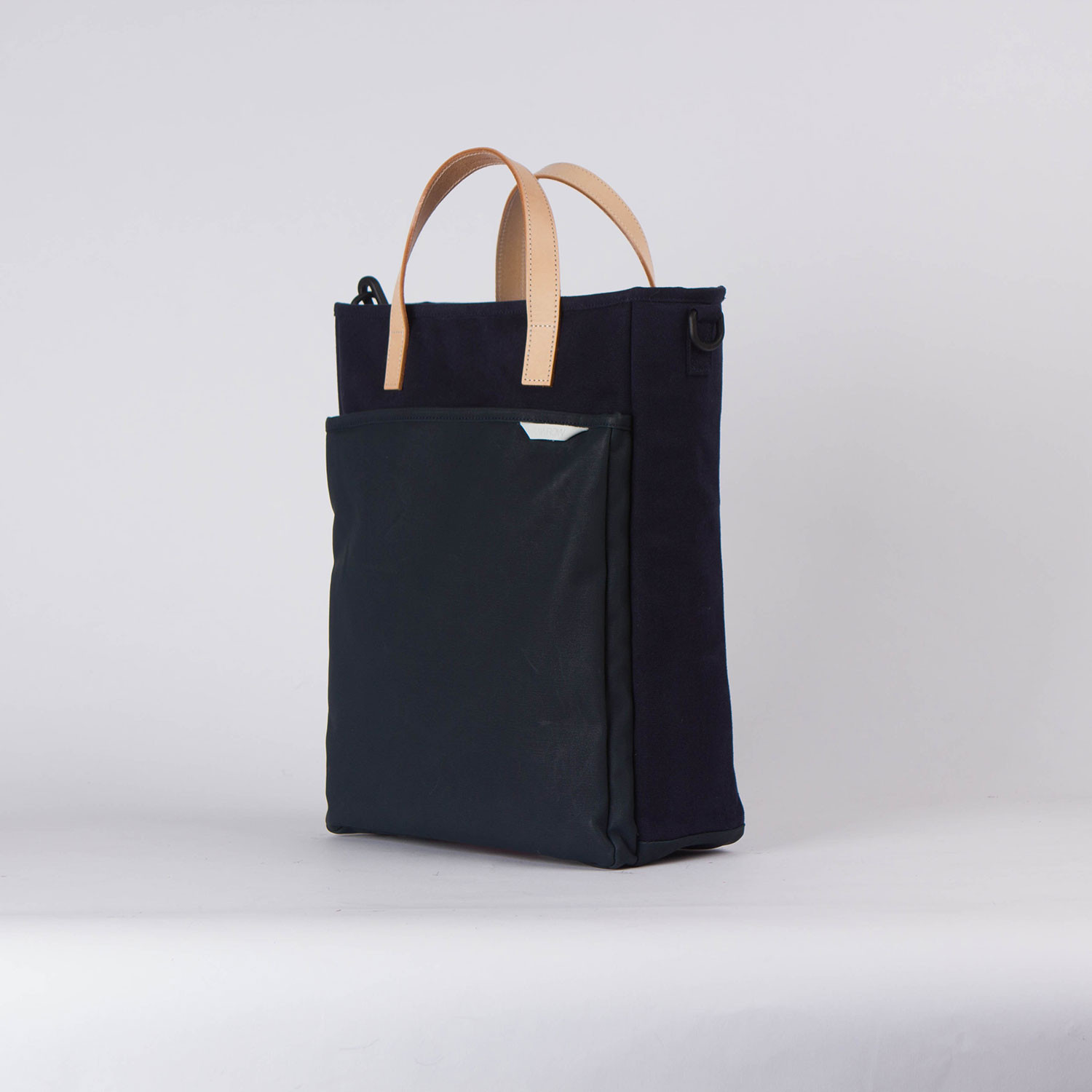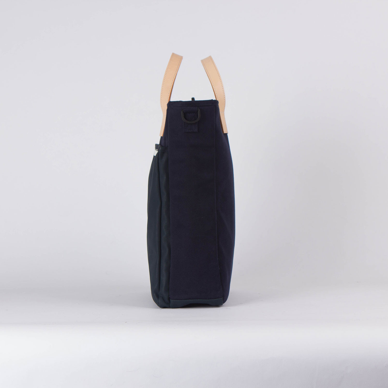 Featuring a double coated waxed canvas that will age and develop characteristics over time, the Double Coated Laptop Tote 130 is the perfect bag for everyday. Various internal pockets that can hold phones, pens, keys, etc., and an internal holding band secures cylinder-shaped items (e.g. water bottles, umbrella).
