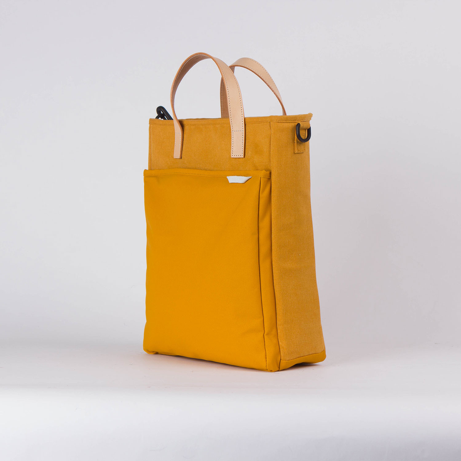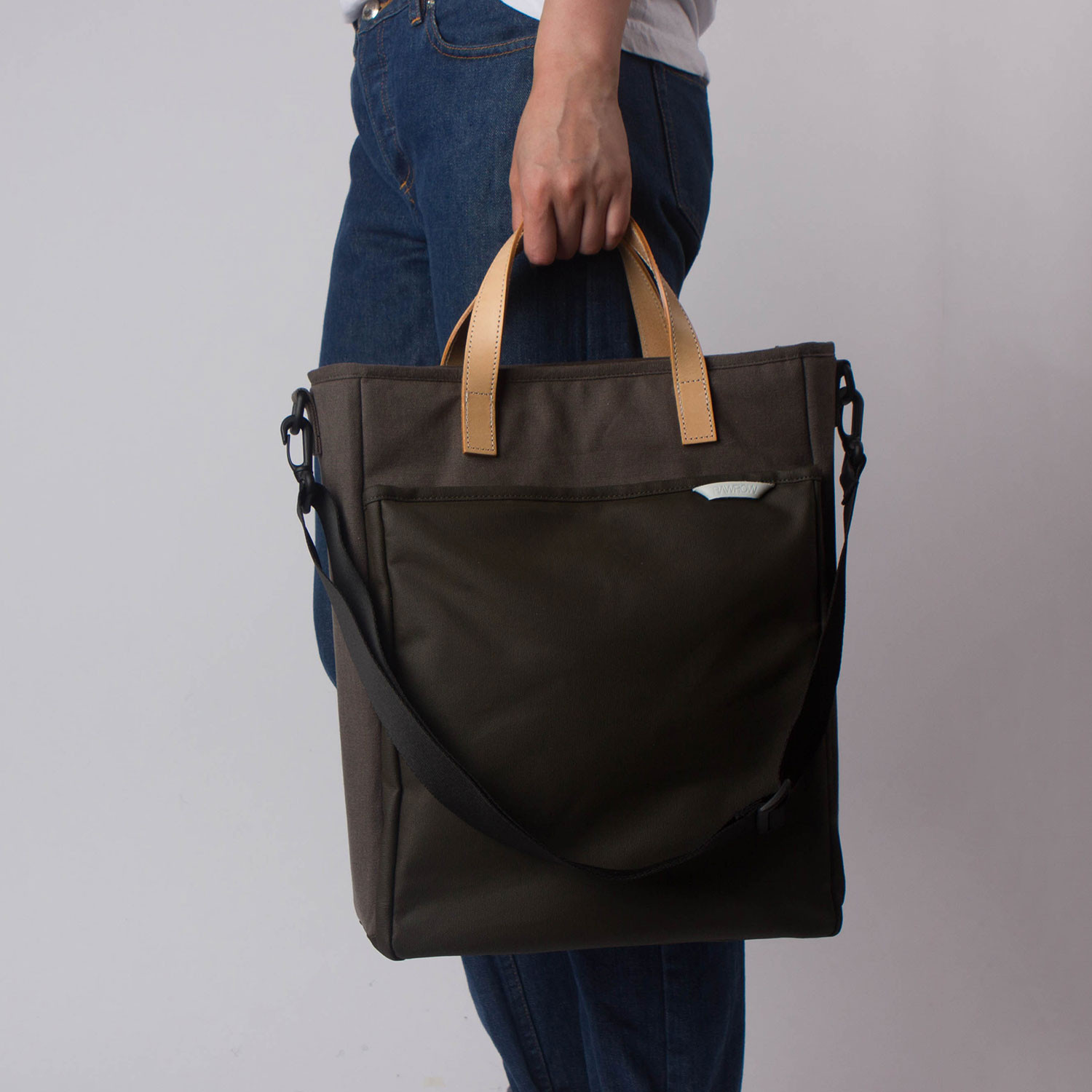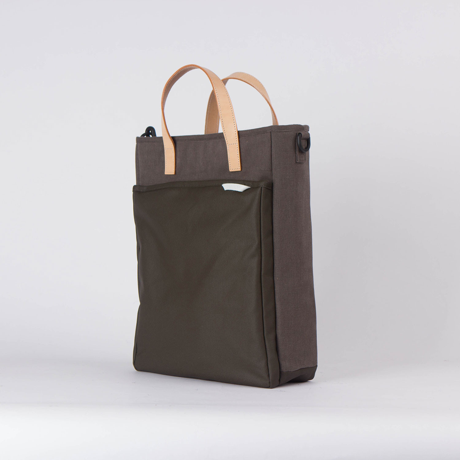 Featuring a double coated waxed canvas that will age and develop characteristics over time, the Double Coated Laptop Tote 130 is the perfect bag for everyday. Various internal pockets that can hold phones, pens, keys, etc., and an internal holding band secures cylinder-shaped items (e.g. water bottles, umbrella).