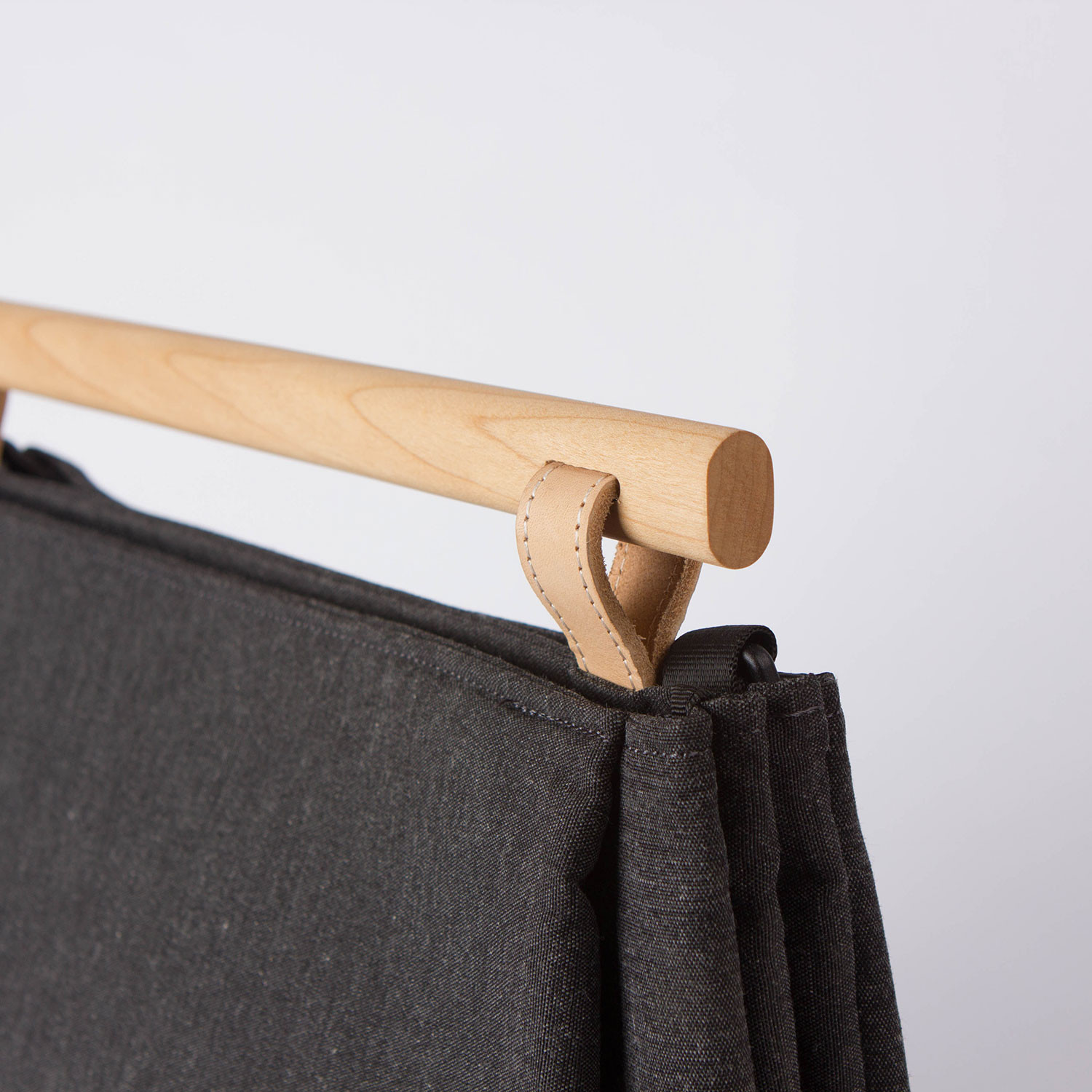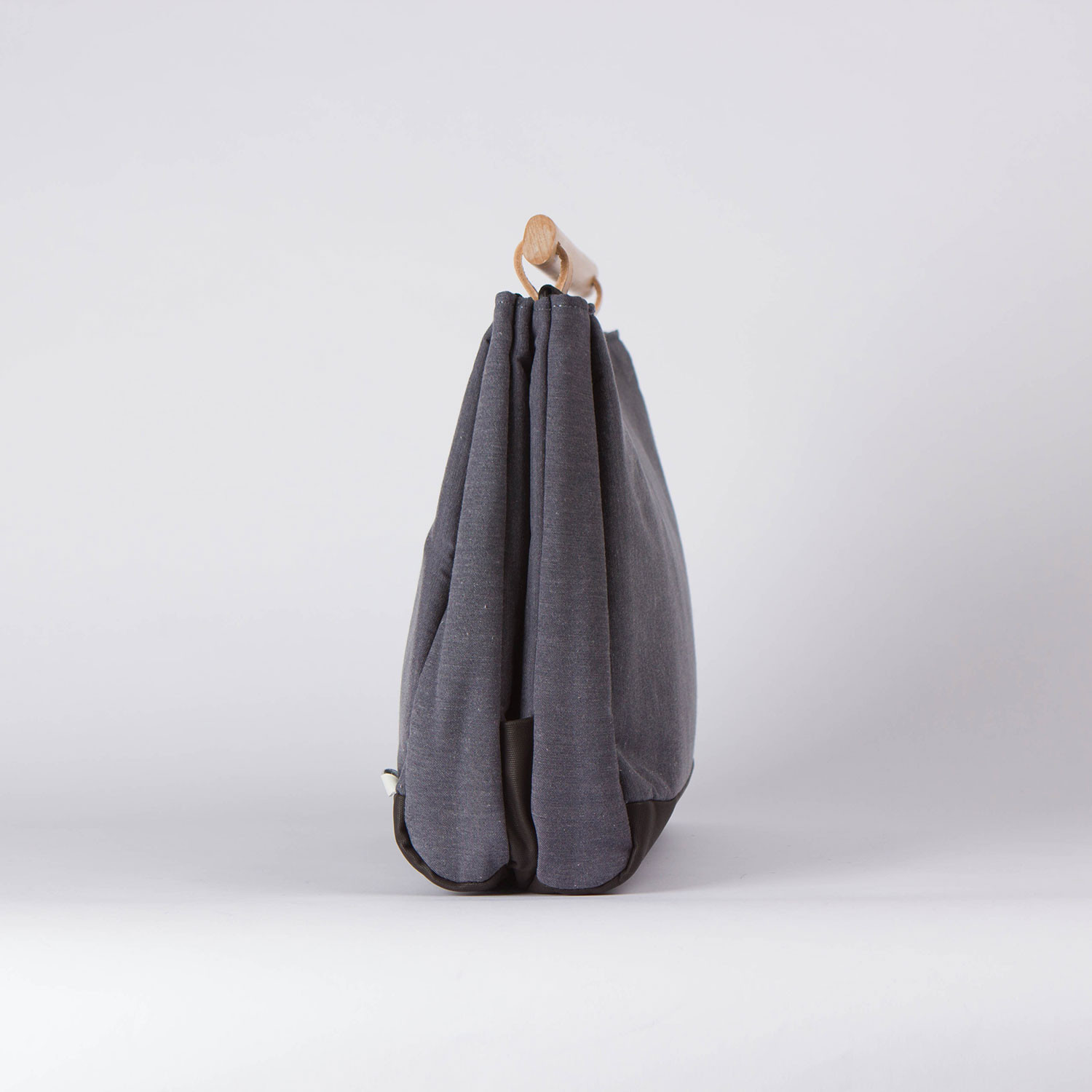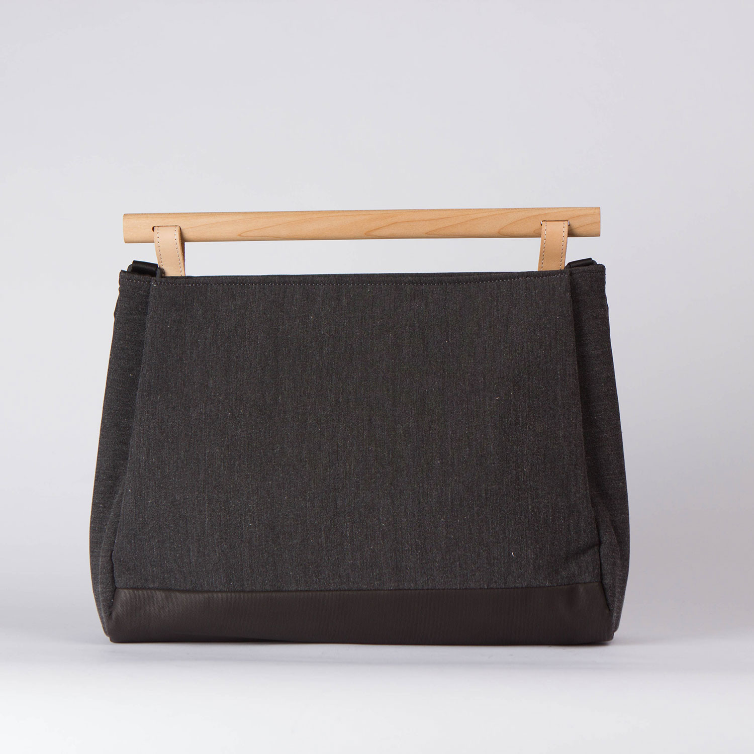 In a waxed chambray fabric that will age and develop characteristics over time and a sturdy and sophisticated maple wood handle, the Sylvan Laptop Shoulder Bag 120 features an easy-insert external pocket for magazines and newspapers and various internal pockets that can hold phones, pens, wallets, etc.