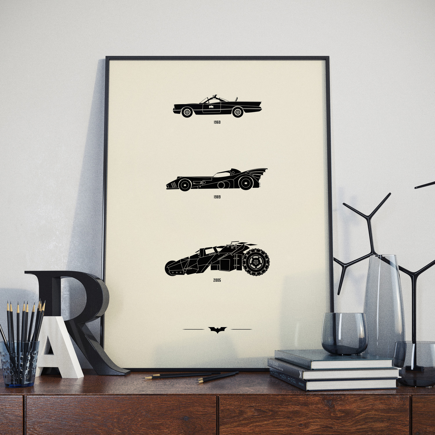 Perhaps few vehicles have been so eternalized in film as the Batmobile; but its evolution over the decades has been an absolutely impressive one. From humble origins, this vehicle began as a wonder of the road, taking the dynamic duo wherever they needed to be. In the 80s, it underwent an upgrade in design and acquired some additional toys. Yet, in the 2000s, the car’s designers weren’t downplaying anything. Big, bold, and badass, this vehicle takes the streets by storm, and with The Iconic Batman Print, it will do the same for your walls.
