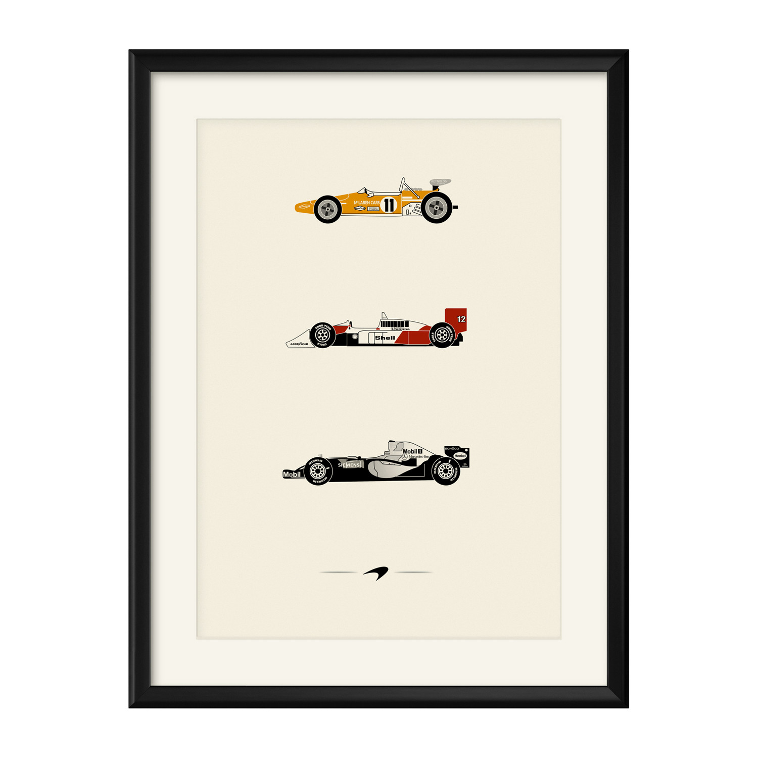 The name “McLaren” has become synonymous with both sporting and luxury. And it’s not hard to see why. In this vintage car print, we bring together 3 of the most well-designed McLaren vehicles, known for their spirit, power, and intensity.