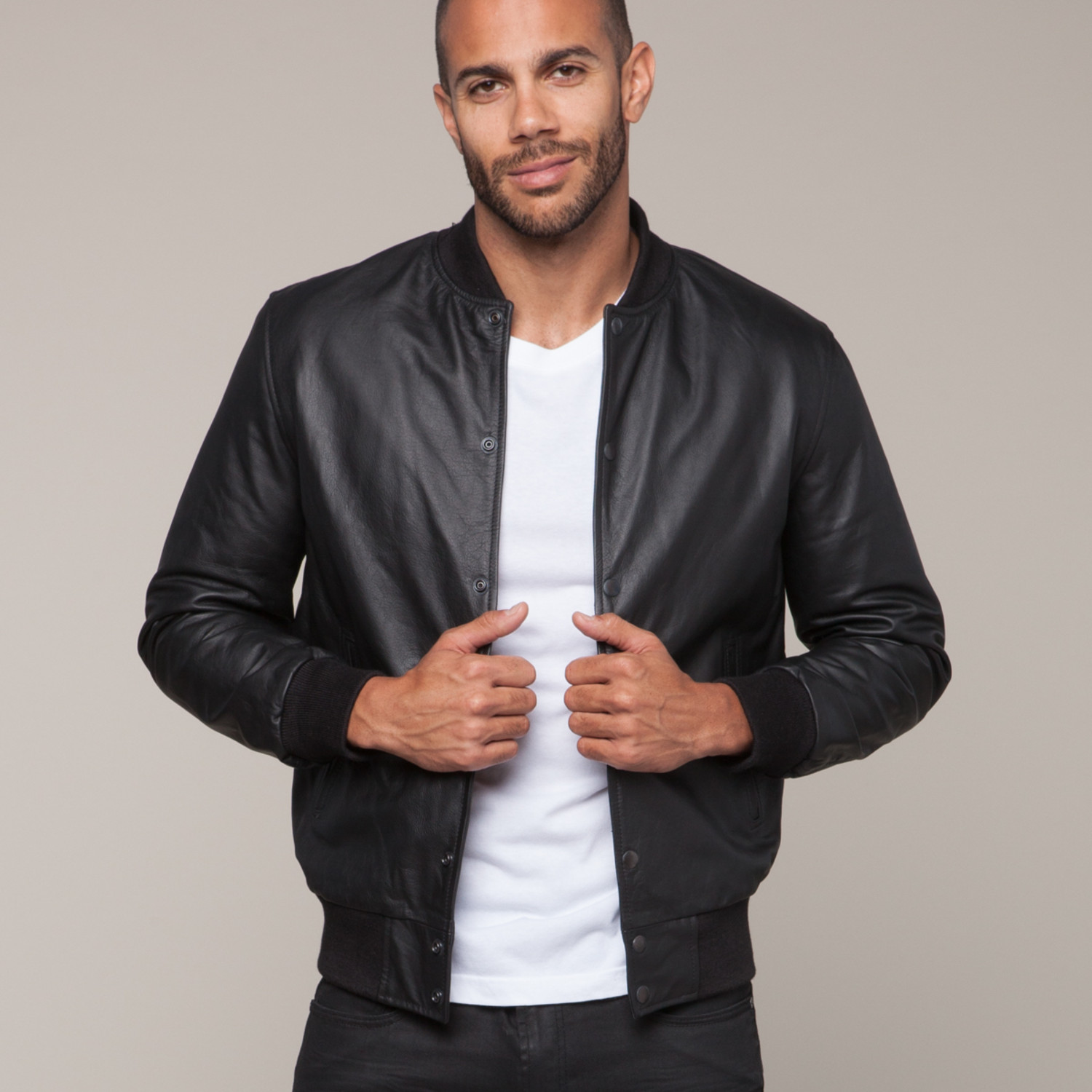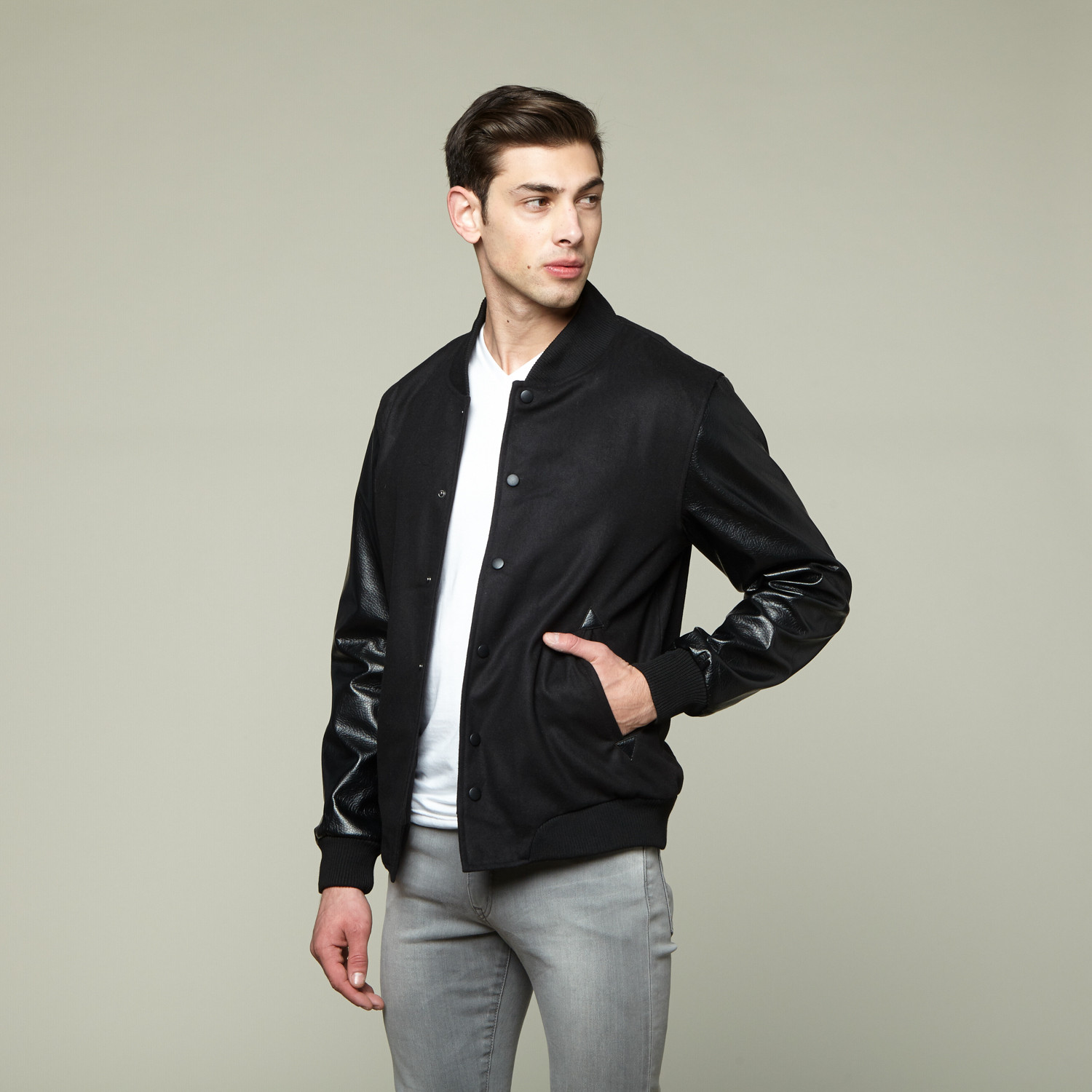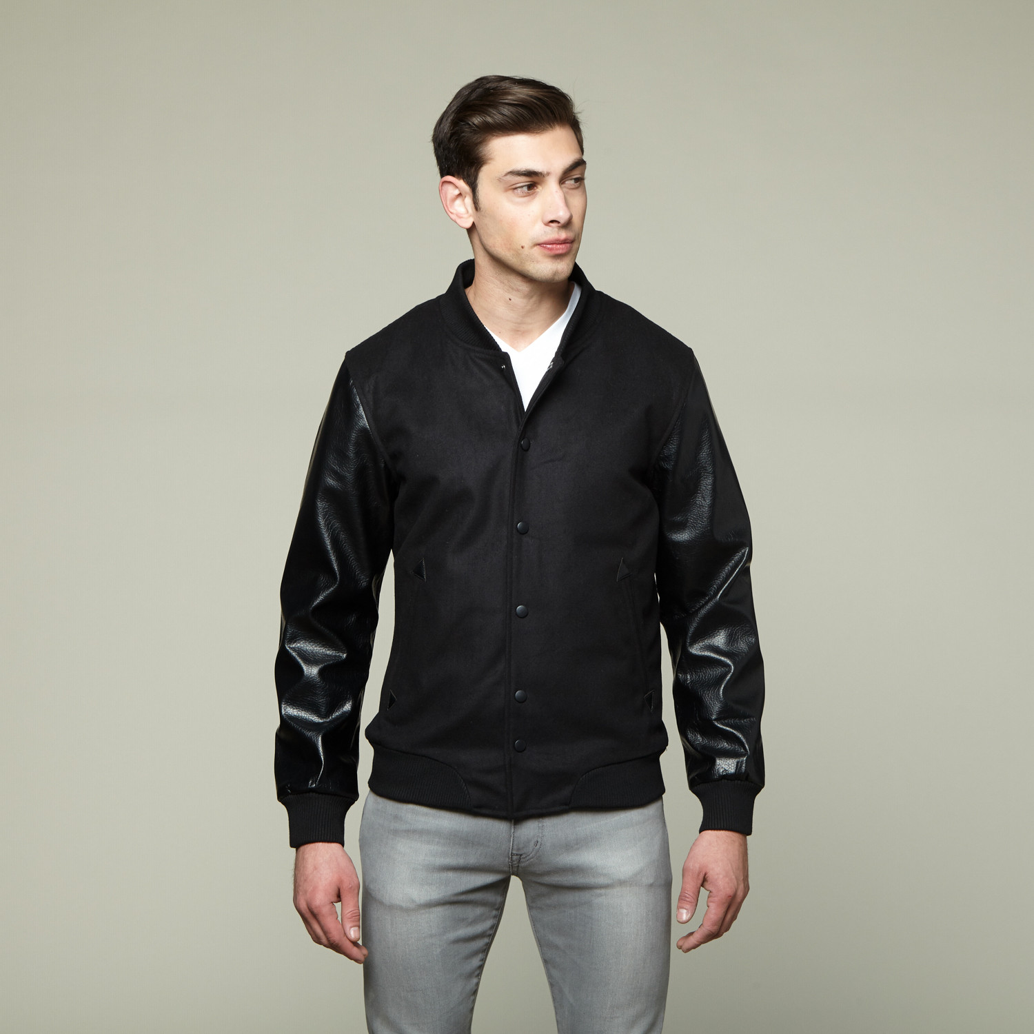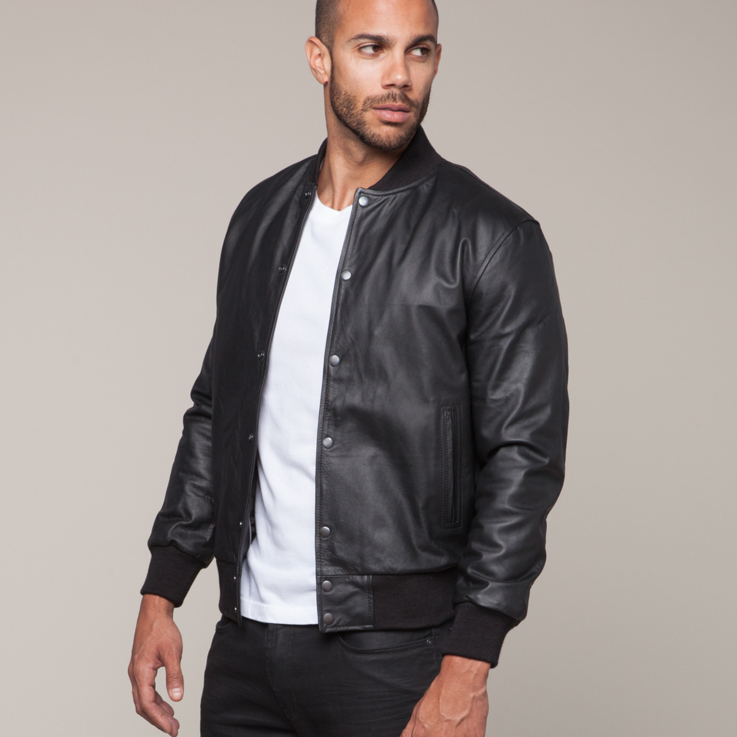 The perfect leather jacket is a necessary staple in any man's wardrobe. The Alma Mater Varsity Leather Jacket has an athletic cut with real leather construction that makes it look and fit like the jacket of your teenage dreams. It's time to treat yourself to this wear-anywhere outerwear.