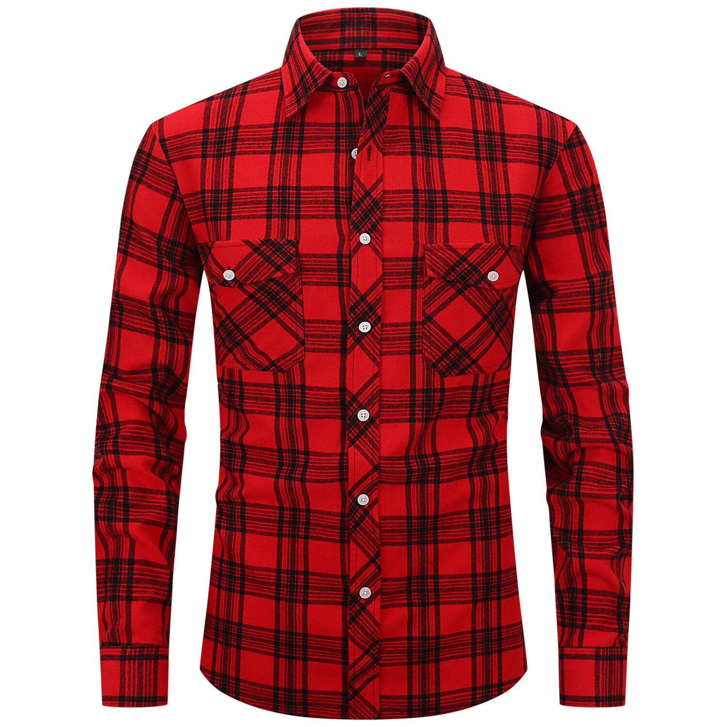 Plaid Long Sleeve Button Up // Bright Red + Black