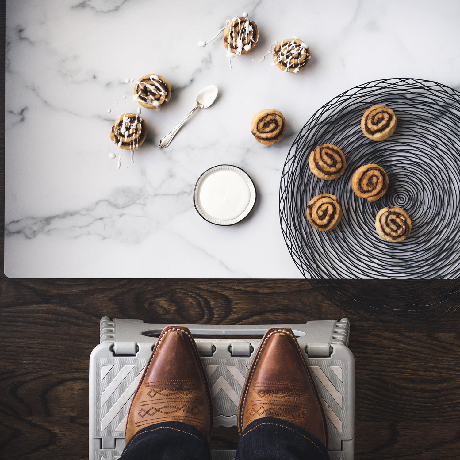 Made of ultra-thin three-layer material and weighing just 2 lbs each, Replica Surfaces store away easily and go wherever you go. If you’re into making a mess, food substances wipe clean with a spray of standard cleaner and a paper towel. Go on, Replica can handle it.