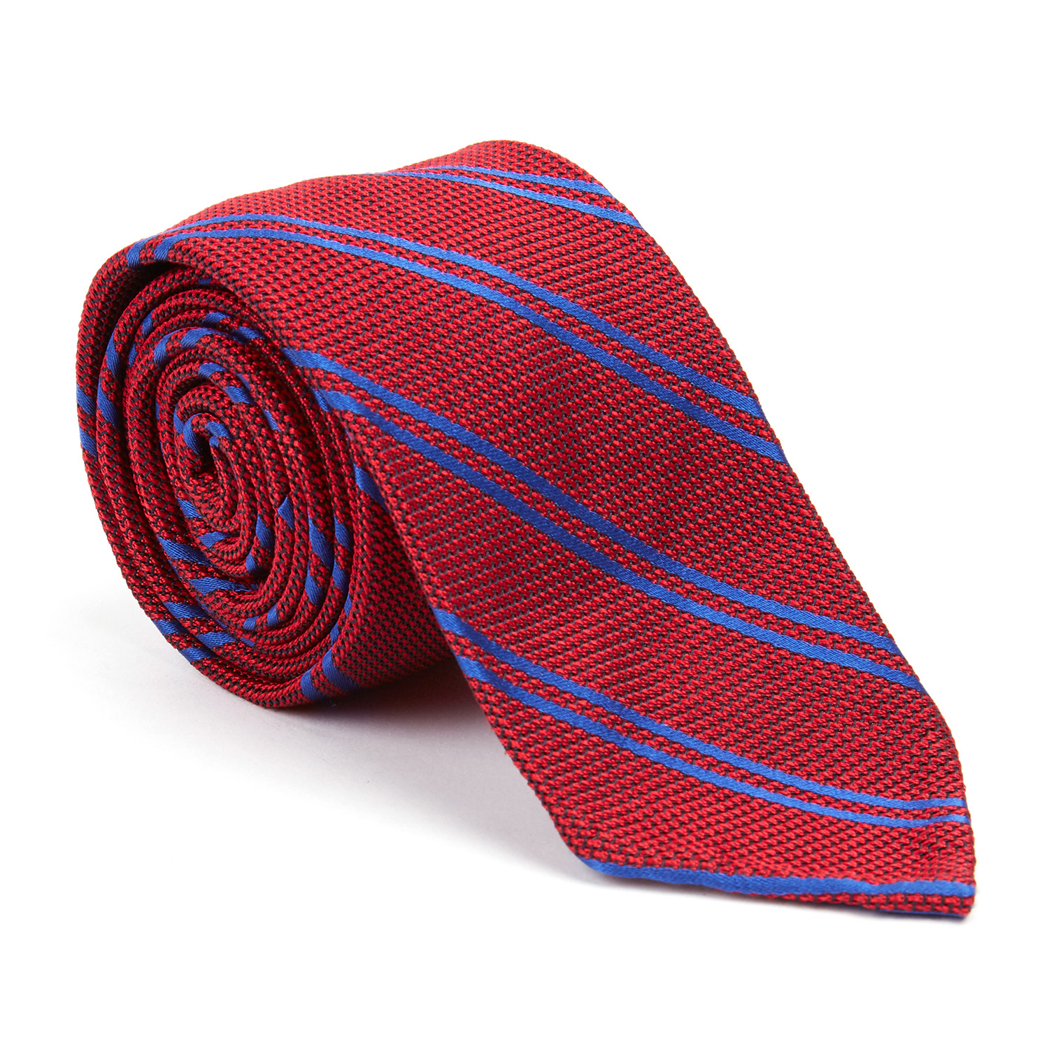Grenadine is made from fine, hard-twisted silk yarn on ancient wooden looms. Typically seen in dark solid colors, this grenadine tie ups the ante with contrasting stripes to add visual interest. Res Ipsa's grenadine fabric is custom-woven by one of Italy's finest mills— the official supplier of fabric for ecclesiastical robes worn by the last eight Popes. Handmade in New York City, with distinctive finishes like a grosgrain neckband, self-loop and self-tipping, it's the ultimate in neckwear.