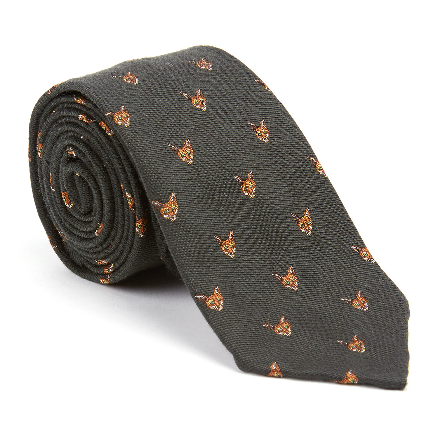 Wool Challis is a lightweight silk-and-wool blend woven fabric first manufactured in Norwich, England around 1832. It was a popular necktie fabric among Victorian gentlemen, and remains so today, because it is firm and resilient, yet remains soft. Handmade in New York City, this necktie is outfitted with distinctive finishes like a grosgrain neckband, self-loop and self-tipping.