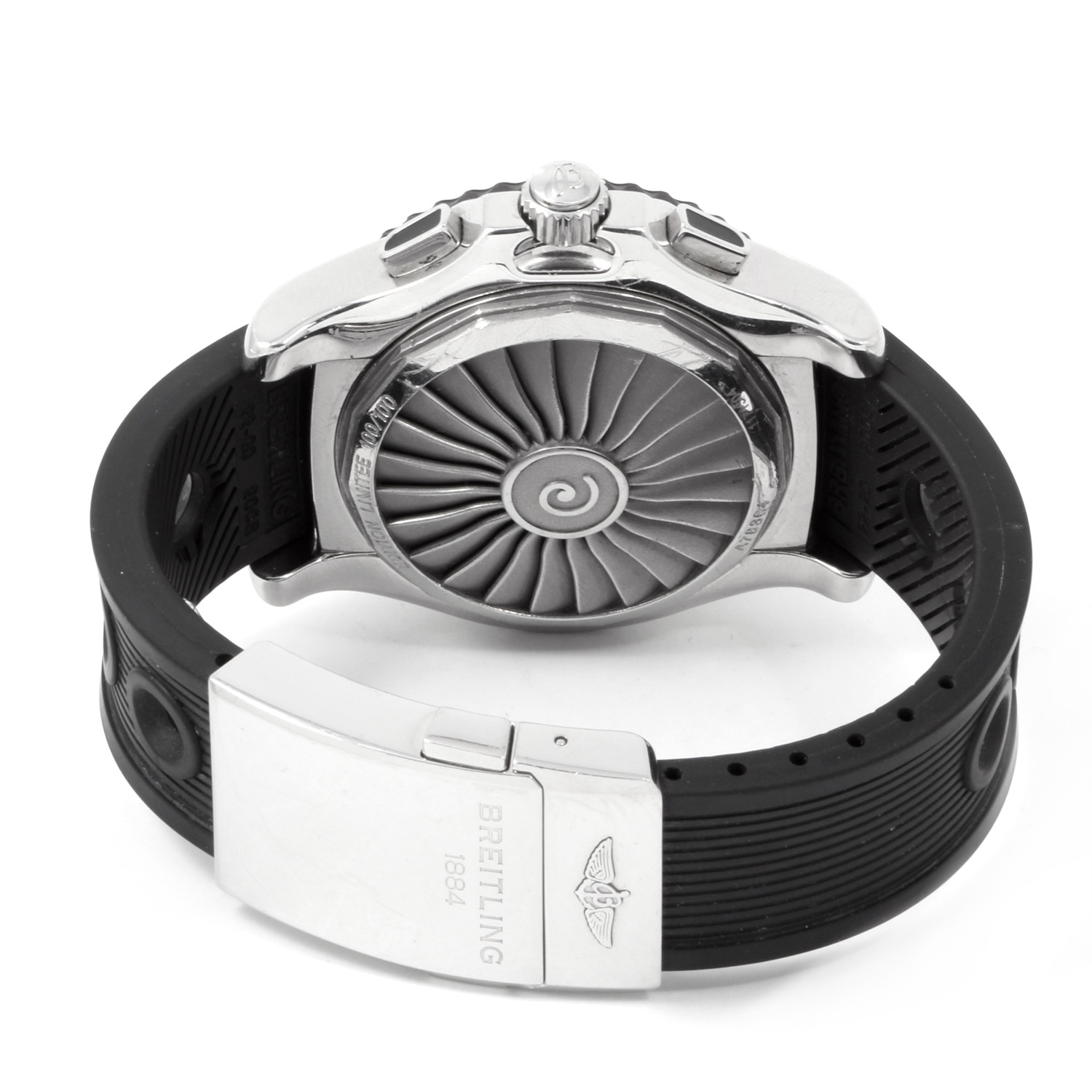 Featuring a bi-directional rotating bezel, a black dial with luminous hands and index hour markers, and a tachymeter scale around the outer rim, the Breitling Airwolf Raven "Reno Edition" Quartz is a handsome timepiece with all the trimmings.