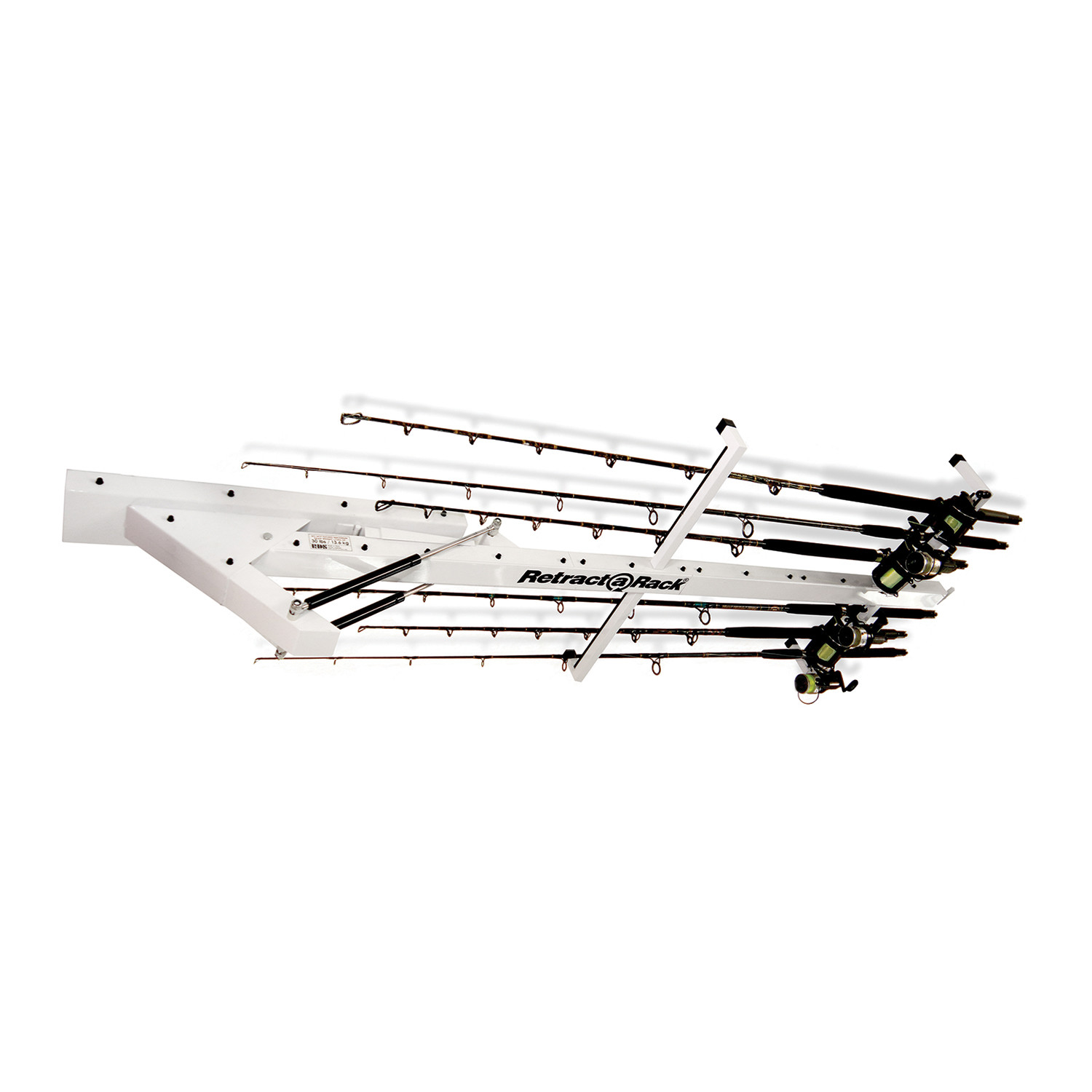 Retract-A-Rack is a sensible overhead storage solution for your gear. Reduce clutter and stay organized with this durable, easy to use, and easy to install ceiling-mounted gear rack. It utilizes pneumatic gas shocks for easy loading and unloading, and can hold up to 8 fishing rods, or a combination of other gear. Keep your important equipment off the ground, organized, and safe from harm.