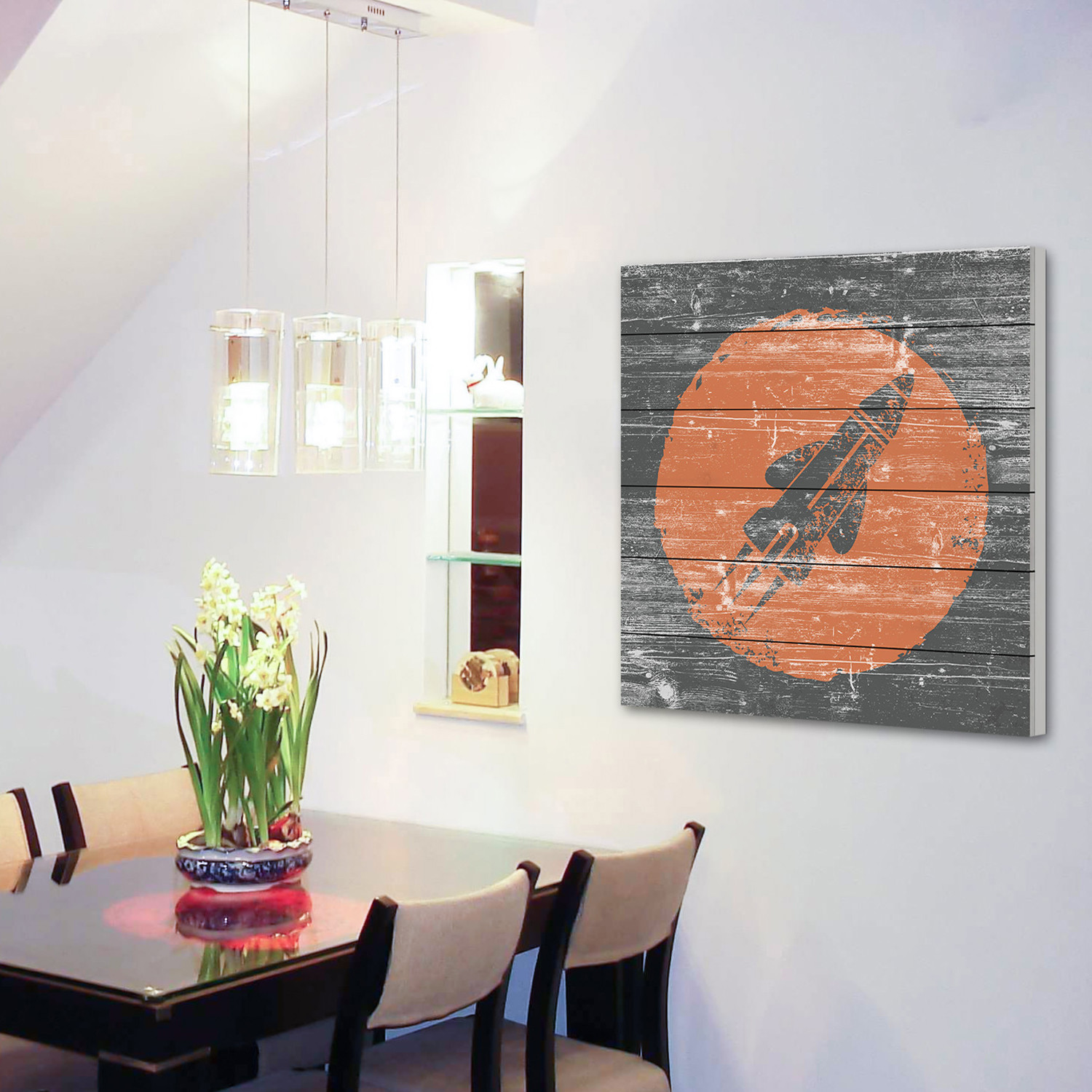 Eccentric and juxtaposed, this collection of pieces from the Marmont Hill art collective is rustic and rugged, artfully faded onto white wood planks, but features bold and futuristic imagery. Enjoy spacemen, flying saucers, and distant moons, laid over a classical Americana aesthetic.