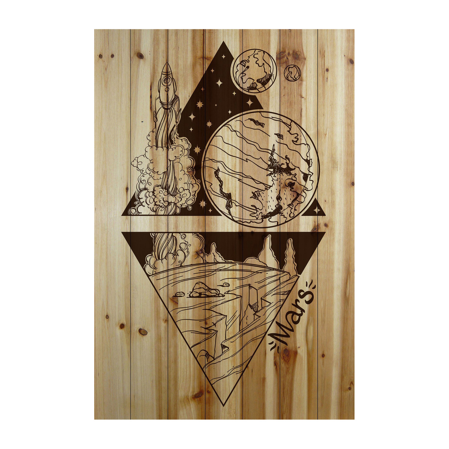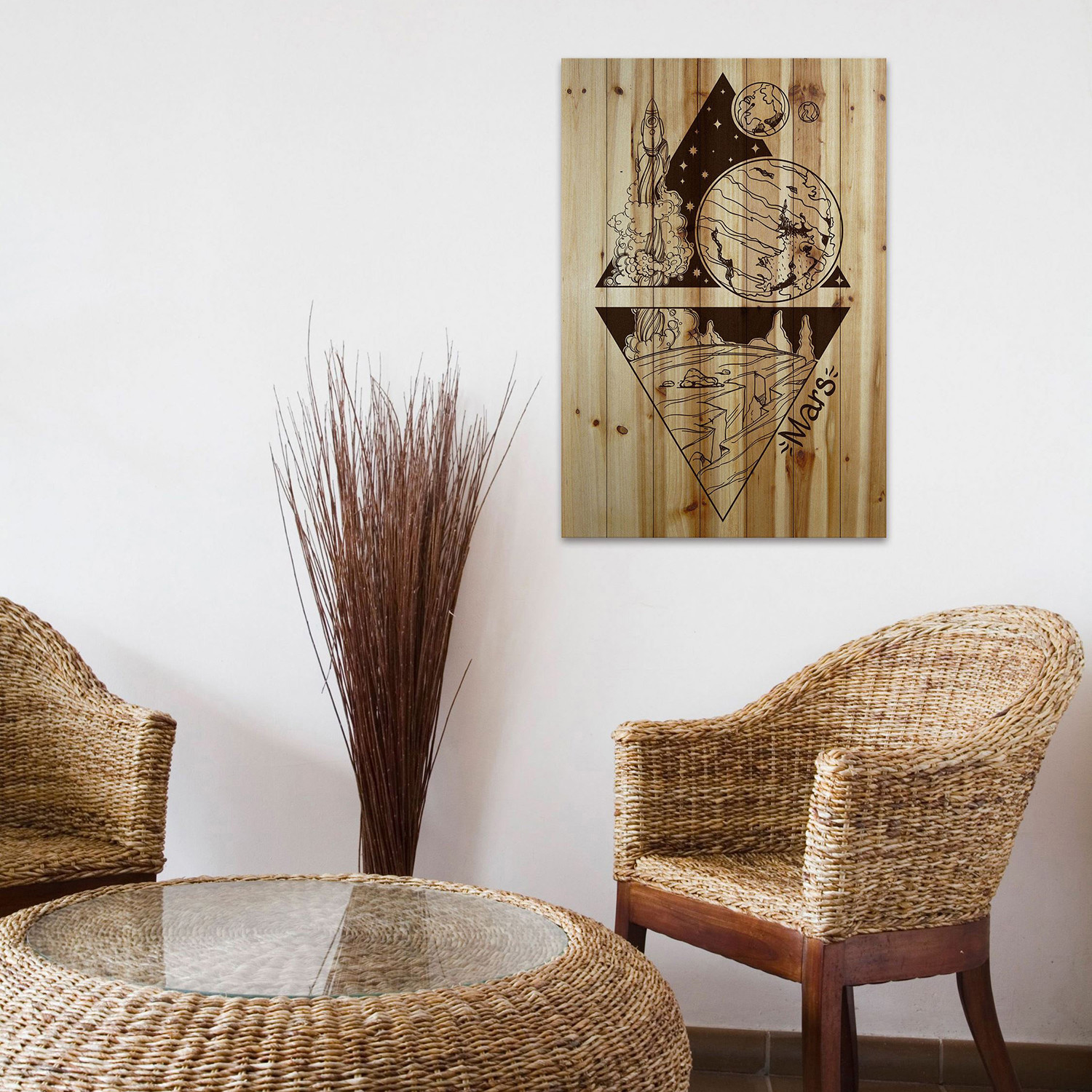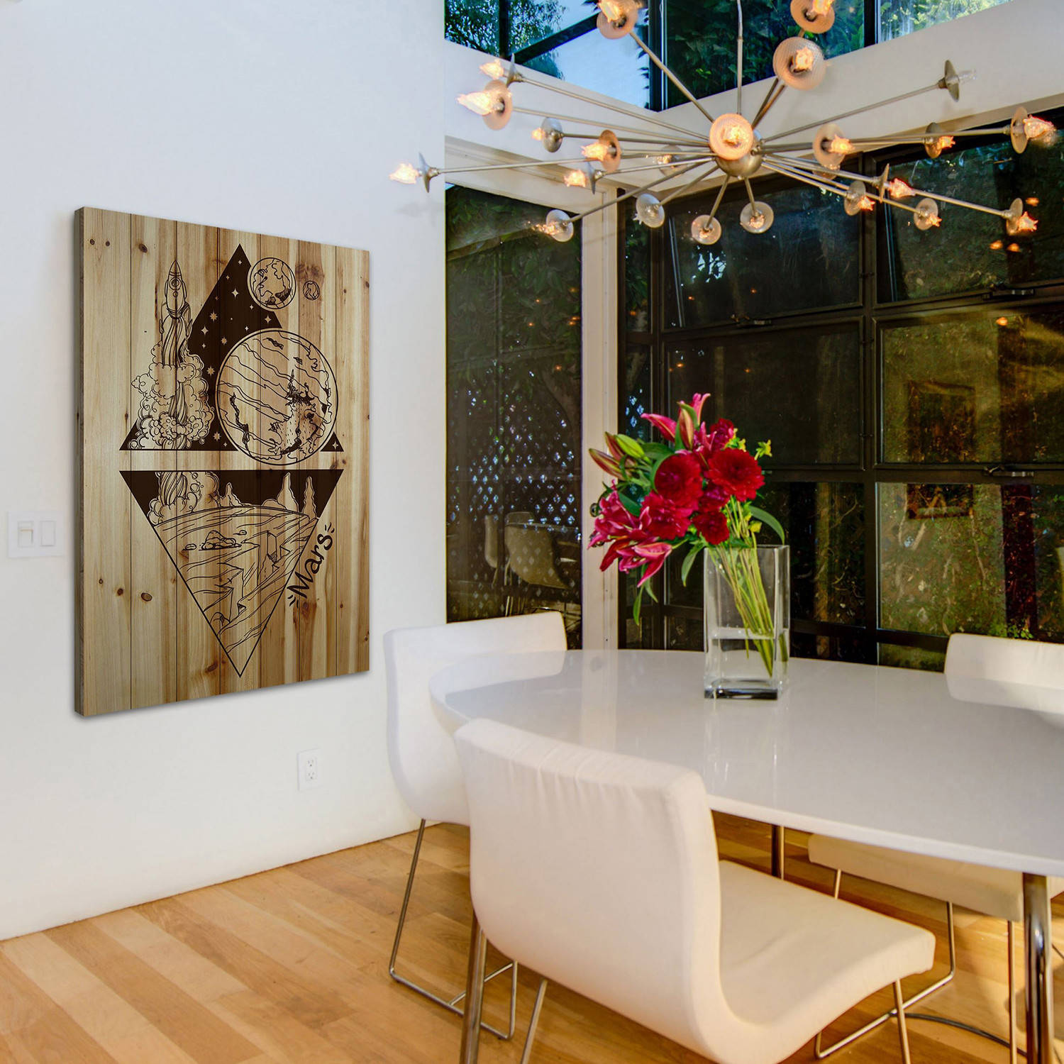 Eccentric and juxtaposed, this collection of pieces from the Marmont Hill art collective is rustic and rugged, artfully faded onto white wood planks, but features bold and futuristic imagery. Enjoy spacemen, flying saucers, and distant moons, laid over a classical Americana aesthetic.