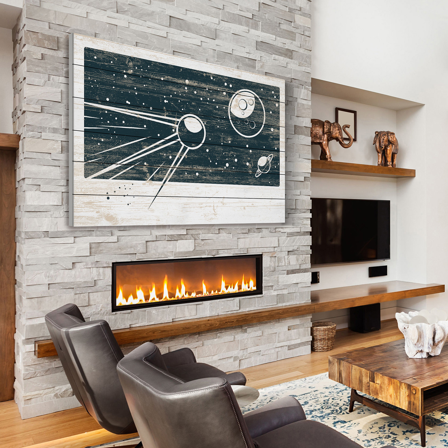 Eccentric and juxtaposed, this collection of pieces from the Marmont Hill art collective is rustic and rugged, artfully faded onto white wood planks, but features bold and futuristic imagery. Enjoy spacemen, flying saucers, and distant moons, laid over a classical Americana aesthetic.