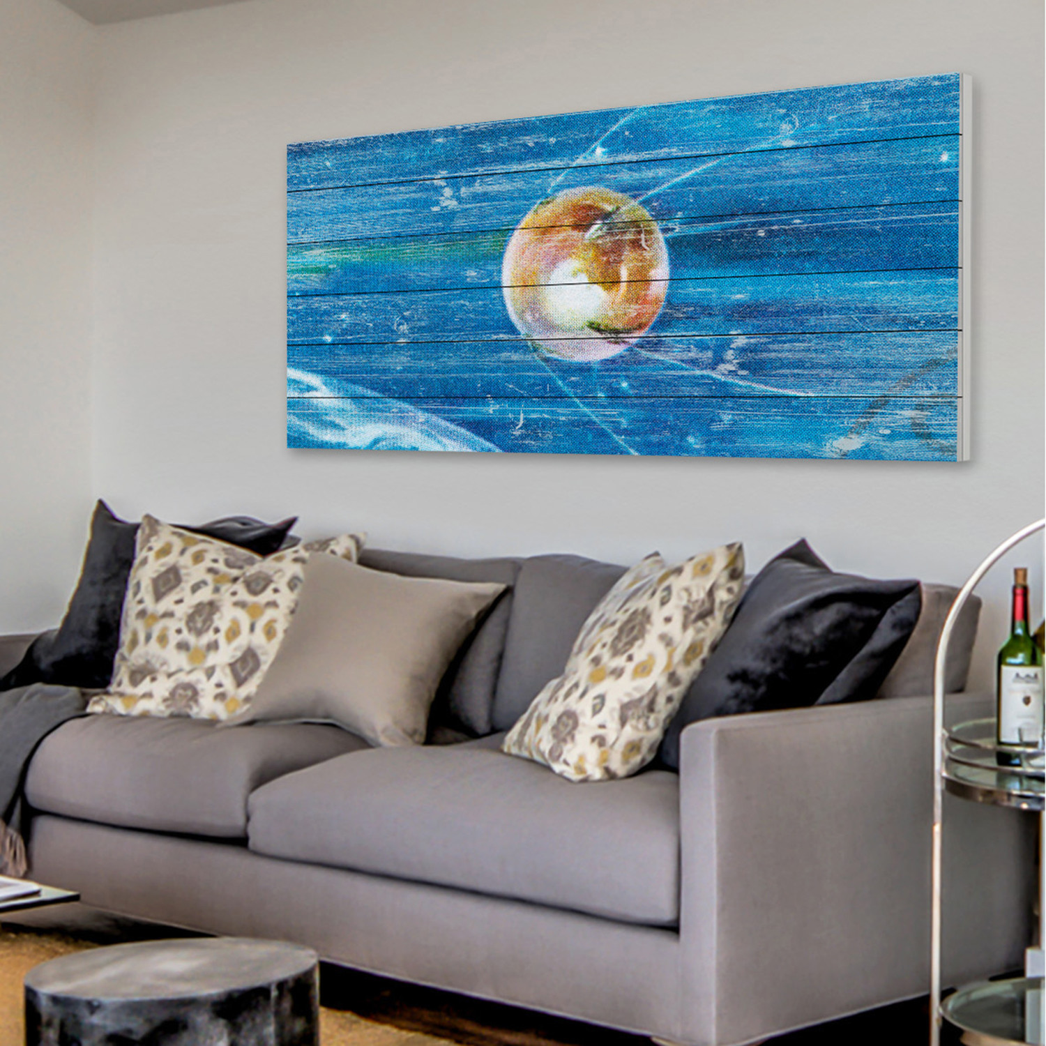 Eccentric and juxtaposed, this collection of pieces from the Marmont Hill art collective is rustic and rugged, artfully faded onto white wood planks, but features bold and futuristic imagery. Enjoy spacemen, flying saucers, and distant moons, laid over a classical Americana aesthetic.