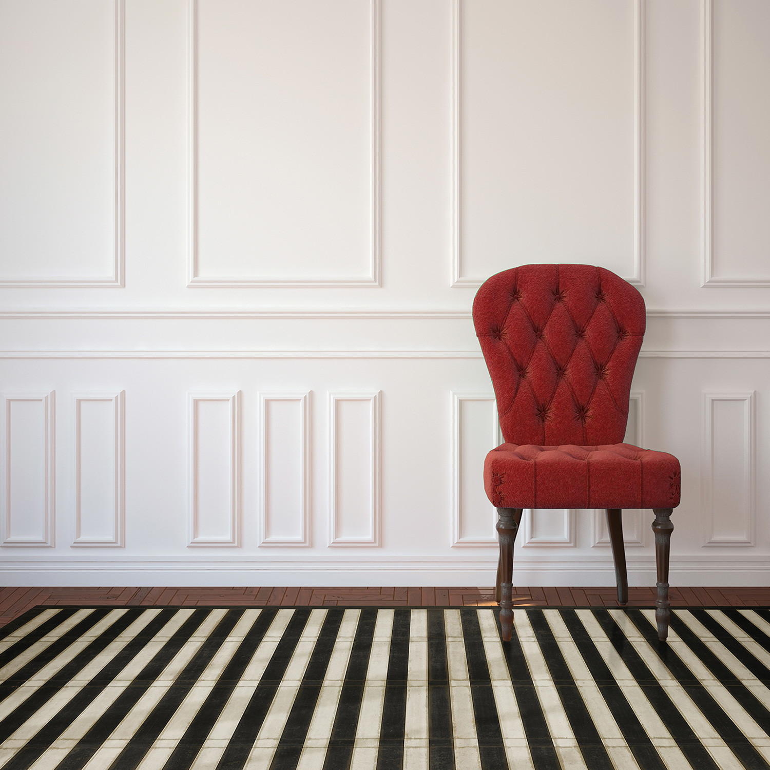 Bold, minimal graphics define this transfixing flexible retro style vinyl flooring. High-contrast lines define this linear piece, perfect for adding an element of texture to your floor with both black and white represented in timeless style. You never need to worry about water spills or slow fading; this piece is made to last.