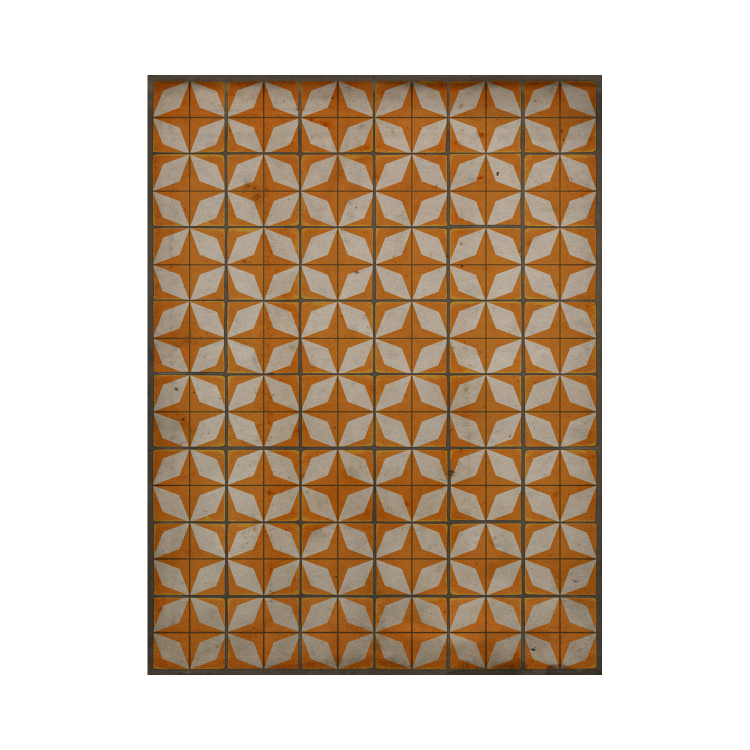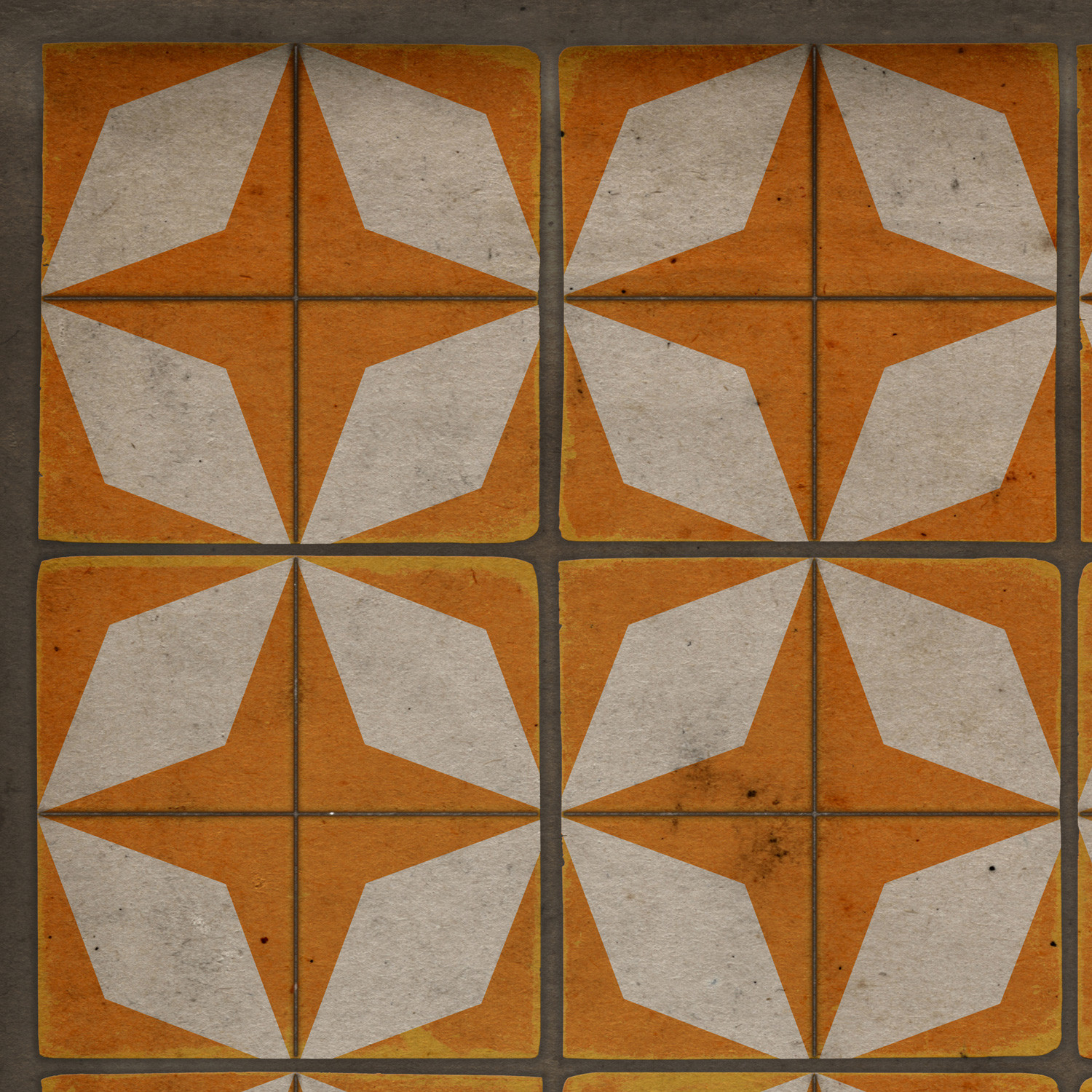 Vinyl flooring is the perfect friend to your floor, turning your kitchens and bathrooms into easily-cleaned oases. Resilient, durable, and water-resistant, they show off beautiful designs such as this one for years to come without fading or even staining. If the White + Orange E5 appeals to you, it's an incredibly easy way to add some art to your interior — without making any holes in your walls.