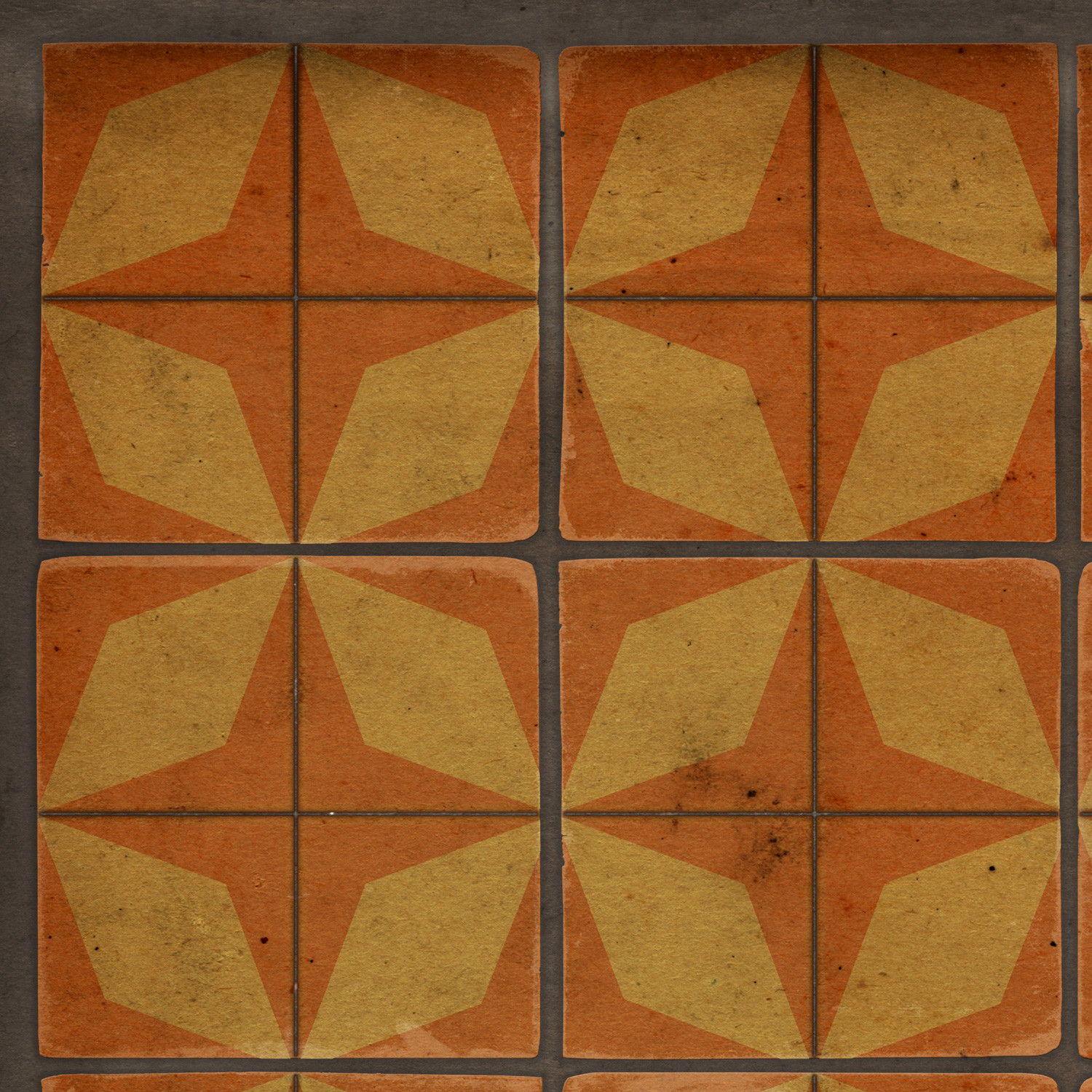 Vinyl flooring is the perfect friend to your floor, turning your kitchens and bathrooms into easily-cleaned oases. Resilient, durable, and water-resistant, they show off beautiful designs such as this one for years to come without fading or even staining. If the Yellow + Orange E5 appeals to you, it's an incredibly easy way to add some art to your interior — without making any holes in your walls.