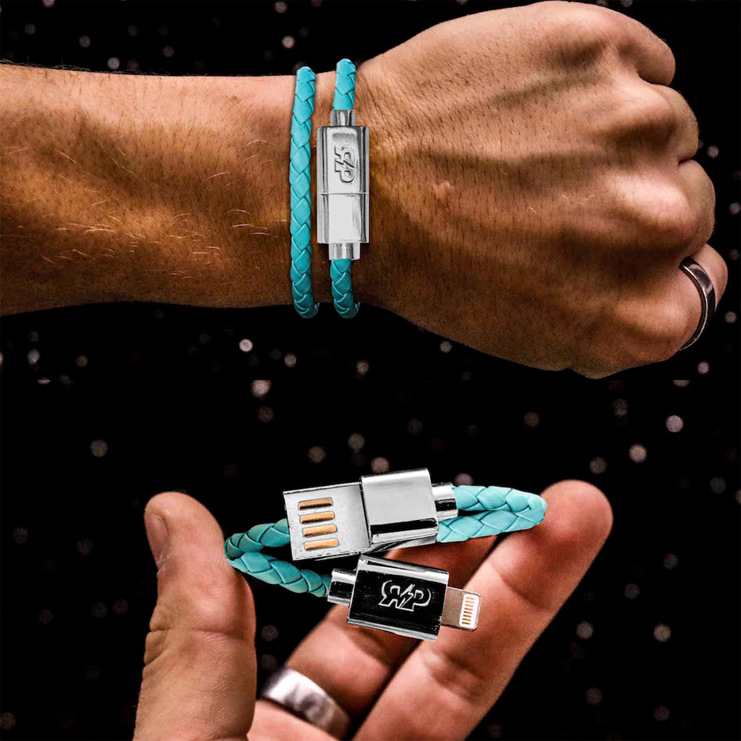 Charging Cable Bracelet Double Wrap // Turquoise + Silver