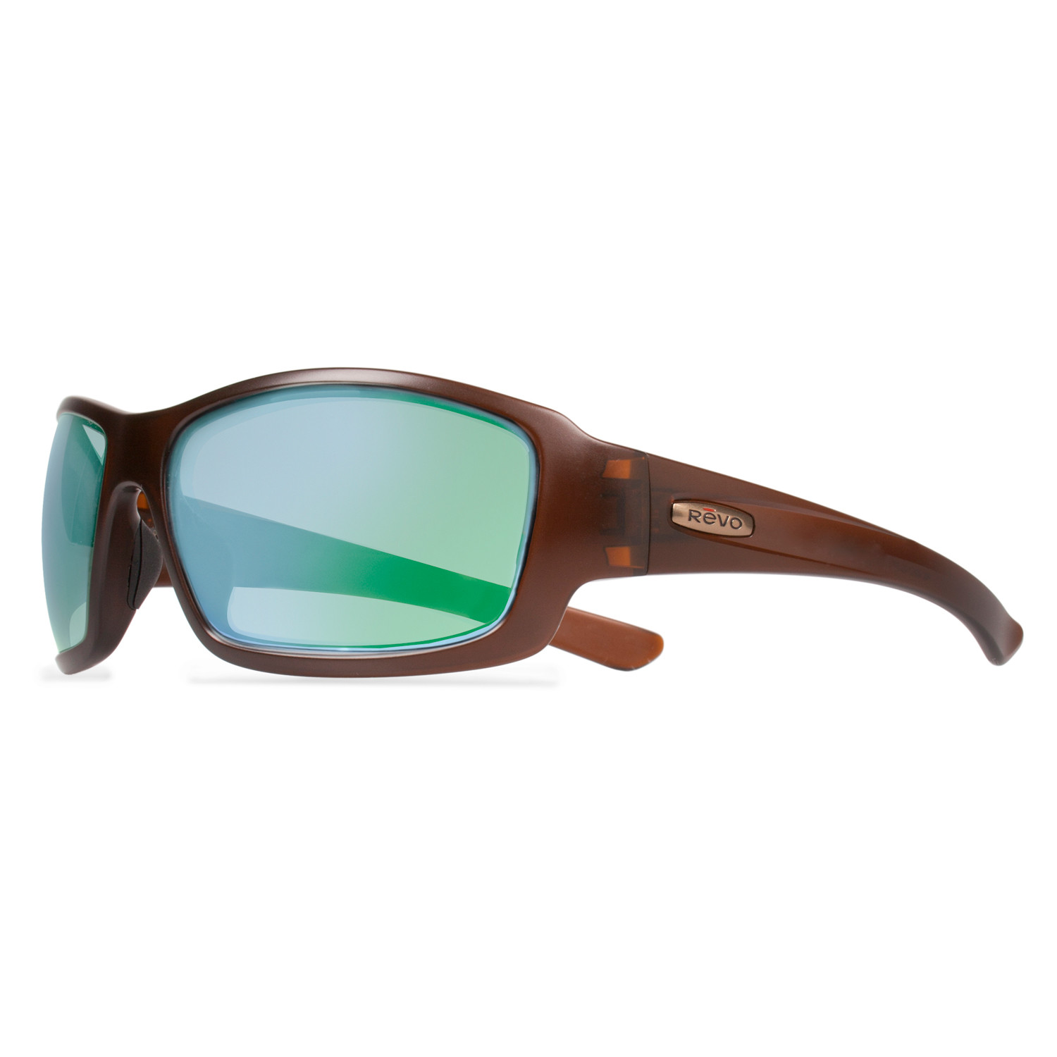 Streamlined style and slip-resistant comfort are the primary mission of the full-coverage Bearing. Revo High-contrast Polarized Serilium lenses provide visual acuity in bright conditions, while a spring-hinge construction creates greater range of motion for enhanced durability. The trademark elastomeric nosepad prevents slippage during workouts or walkabouts in urban or rural landscapes.