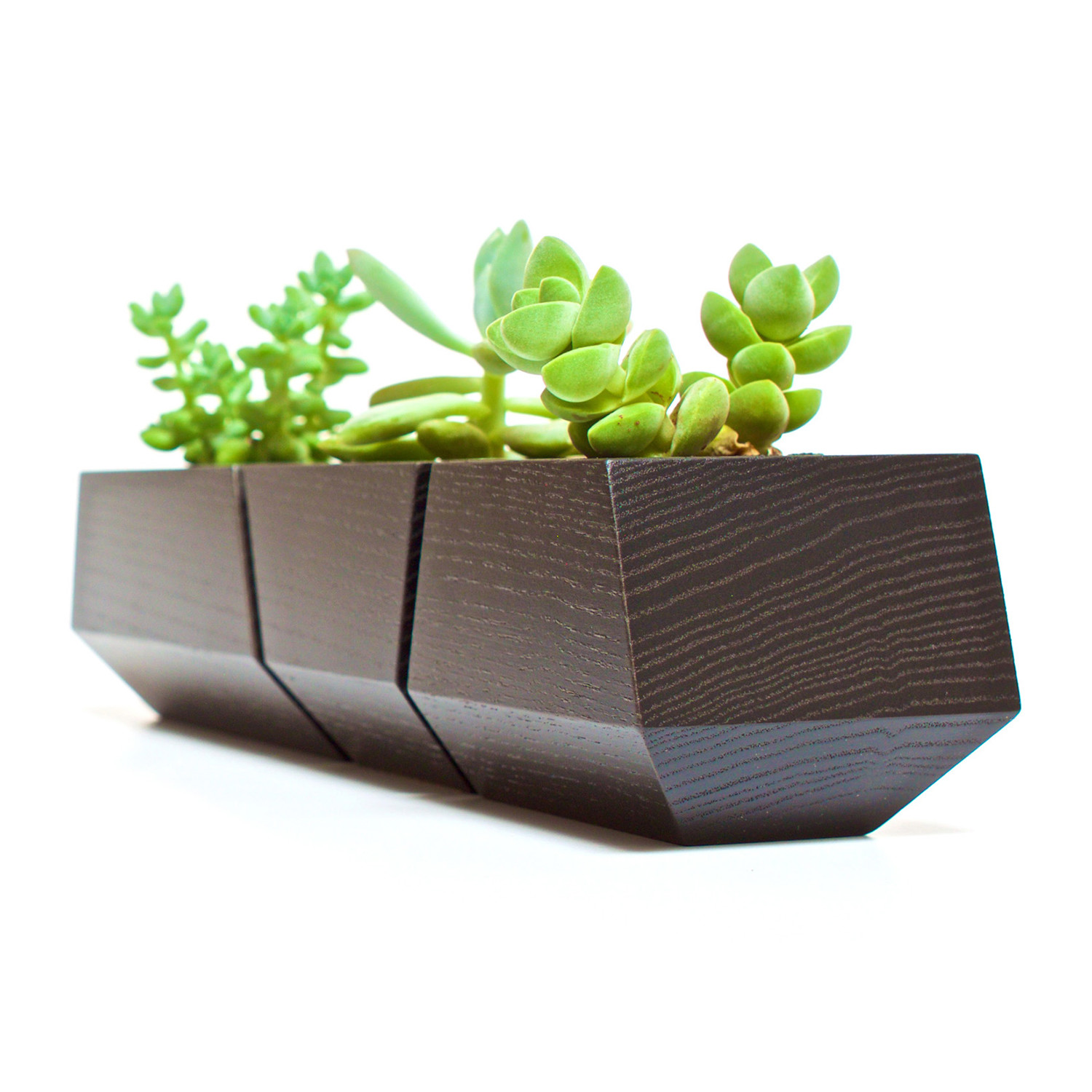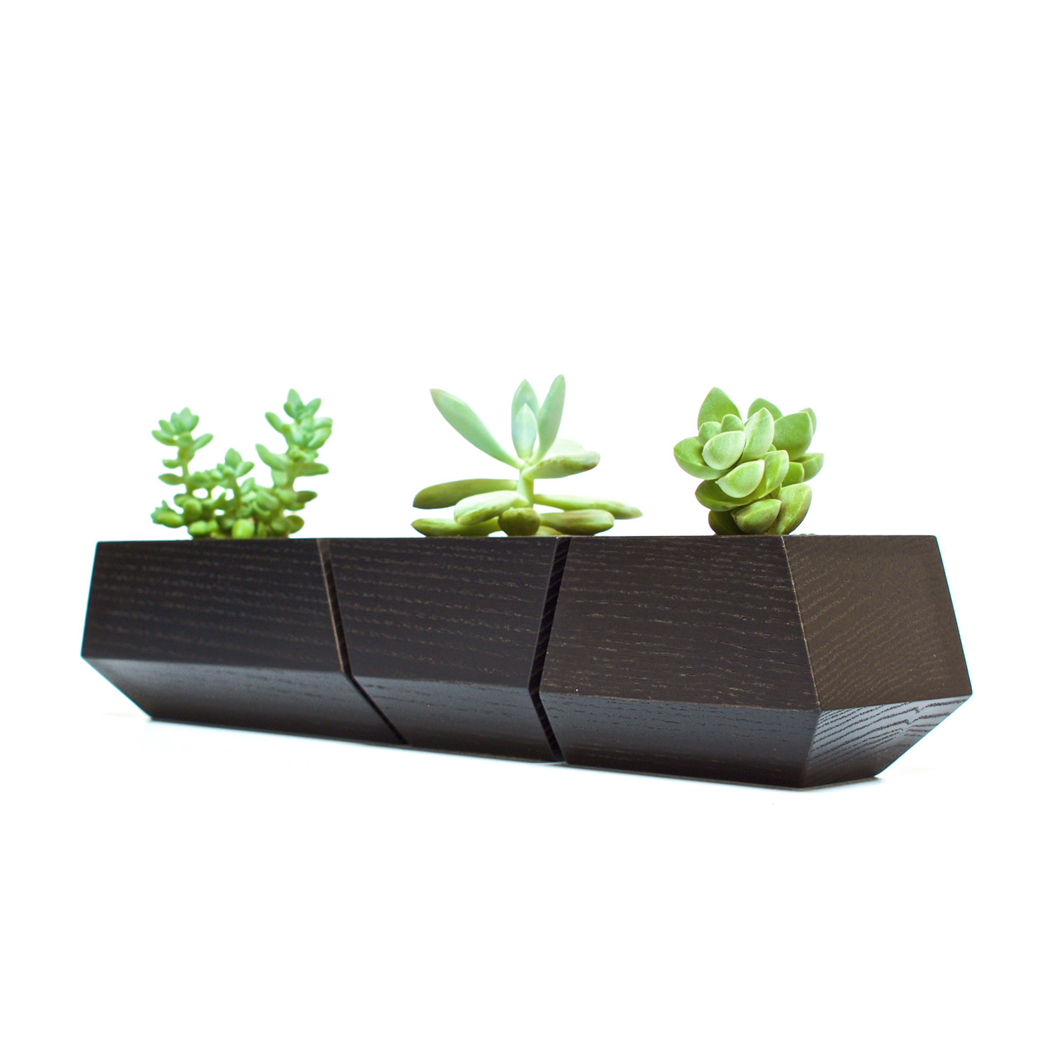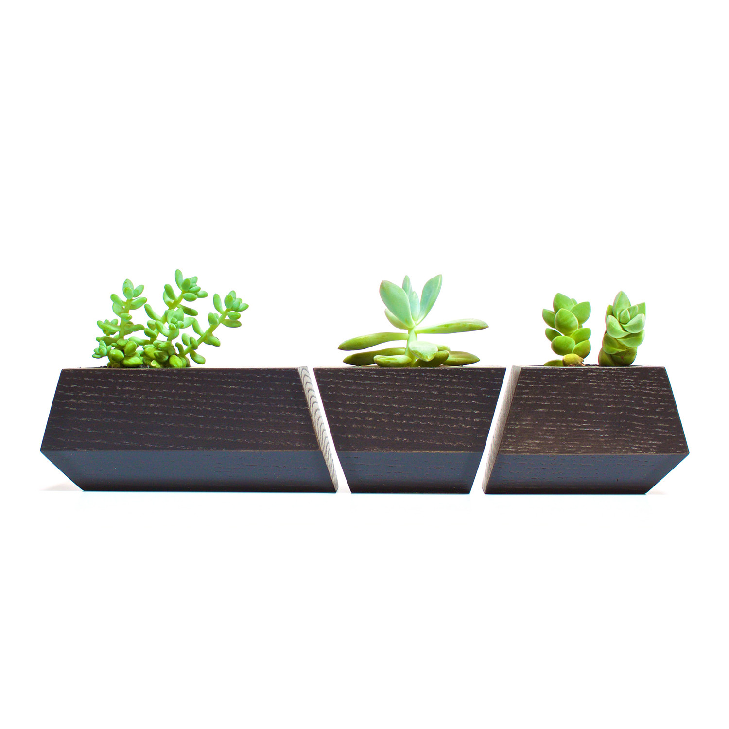 The Boxcar planter set is a cleverly complementary grouping of small planters that are perfect for succulents, and look simple and elegant along a window sill, or as a centerpiece for a table or desk. With a stainless steel inset to hold the plant, it's incredibly easy to place your favorite succulents in soil, and position them within the planters. Handmade in Portland, this little wooden trio is cut from a single piece of wood, so that the grain matches up perfectly when the pieces are positioned in order.
