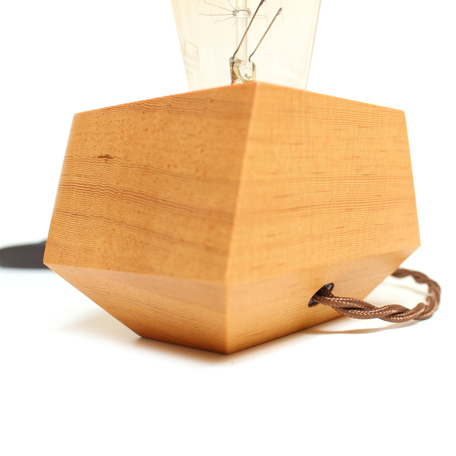 The Boxcar Electric table lamp is made from solid, American-sourced wood with an oil-based finish. This unique light offers style and function with the warmth of a vintage Edison lamp, and the elegance of a modern form. Handmade in Portland, this clever minimalist lamp is the perfect size to sit on a shelf, desk, or nightstand.