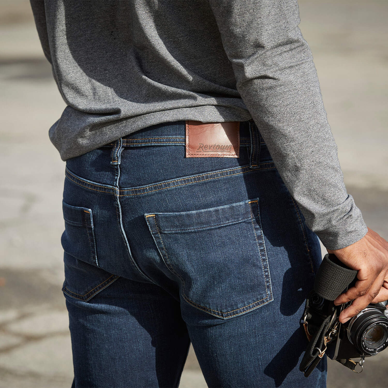 The Sharp Jean is Revtown's best selling, regular fit jean. It’s a classic, easy going fit makes it perfect for every day wear & every occasion. Signature Decade Denim is at the heart of Revtown. The iconic fabric you love, with an innovative twist. It’s a proprietary blend that combines premium Italian-milled denim, a little bit of stretch and a strong, durable thread- just like the stuff used in football uniforms and workout gear. This athletic stretch allows for even bigger guys to wear the correct size and look… well, Sharp! The Sharp has a 15” leg opening & an 11” front rise. Washed Indigo is a best-seller for a reason - a true-blue indigo aged to perfection.