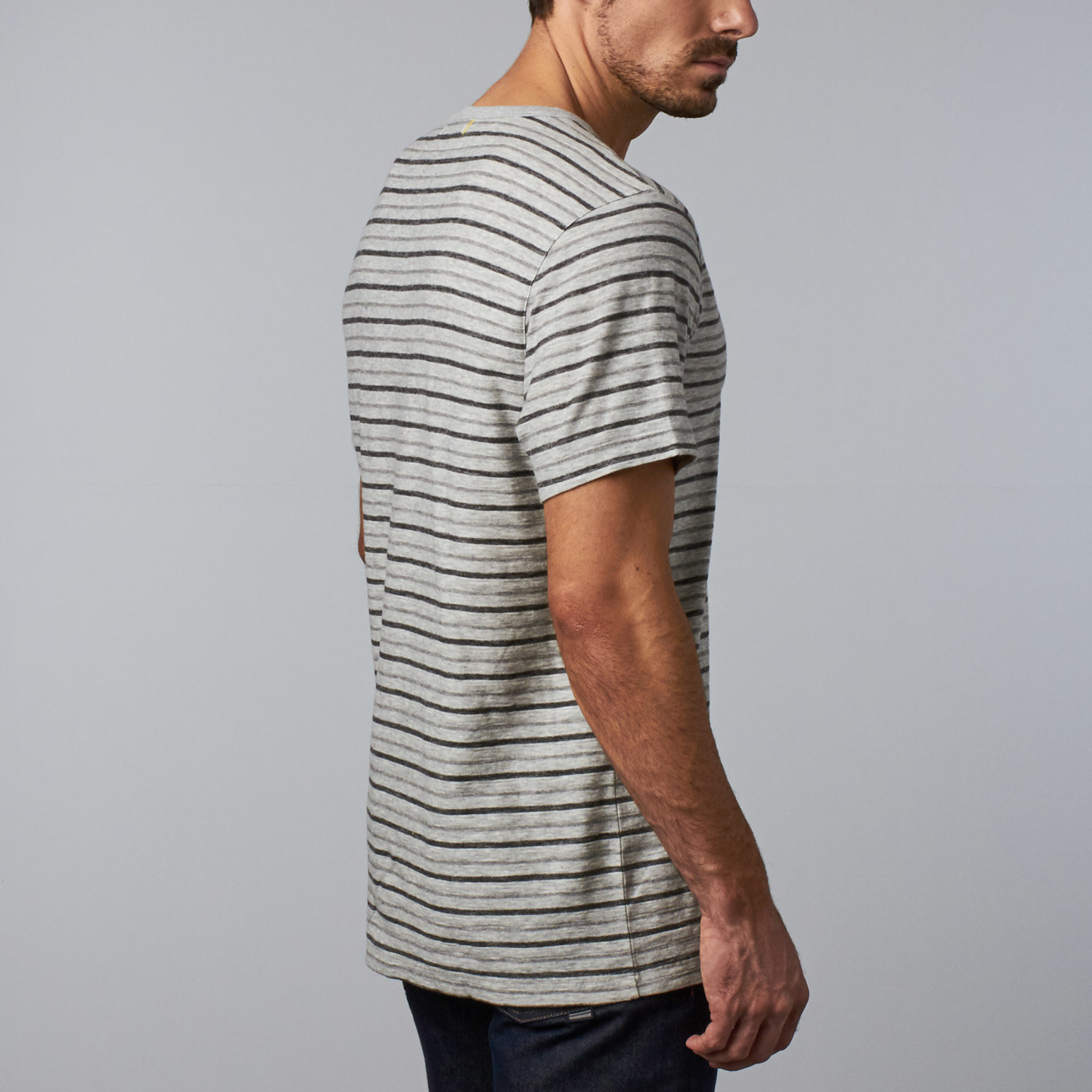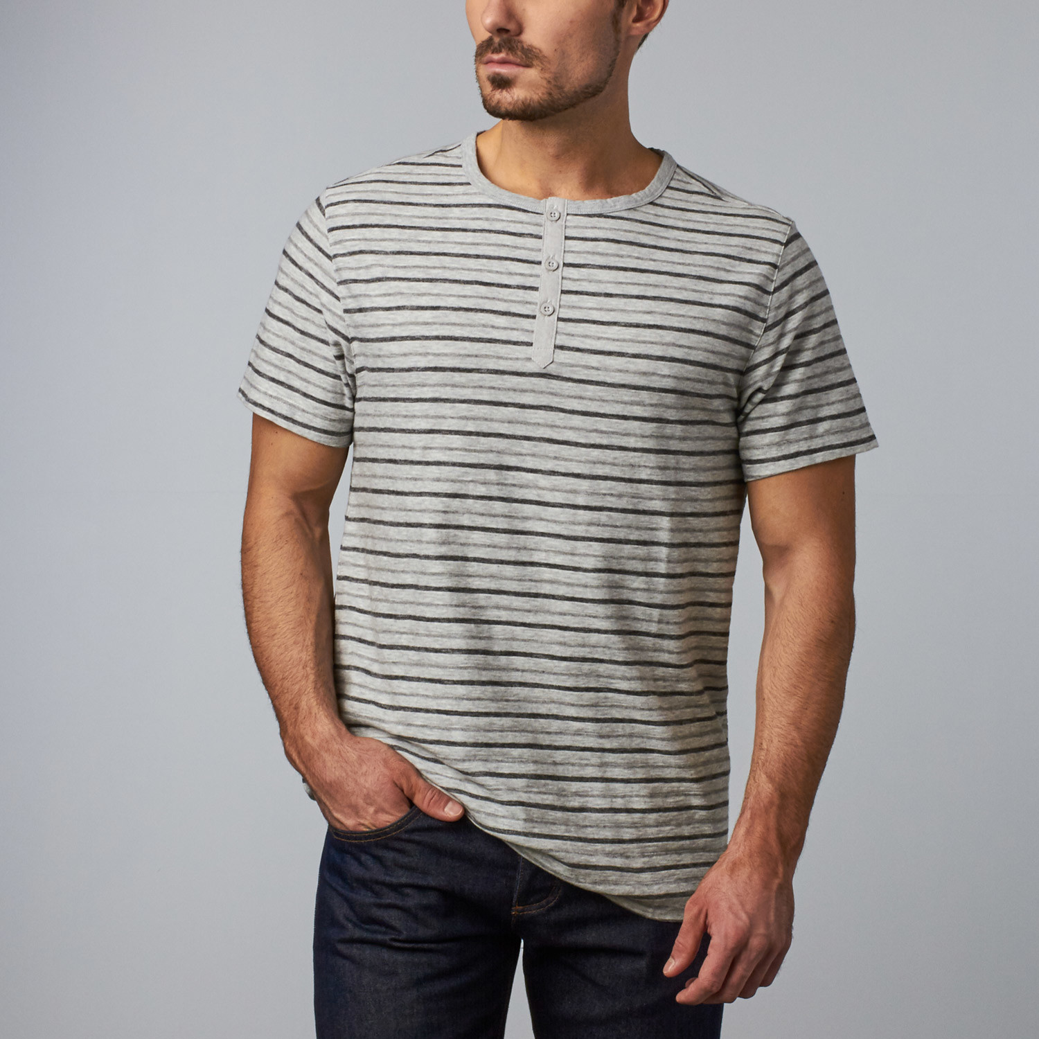A relaxed, henley-style tee done in a laid-back yarn dye stripe, the Merge shirt is a must-have addition to any man's basic drawer.