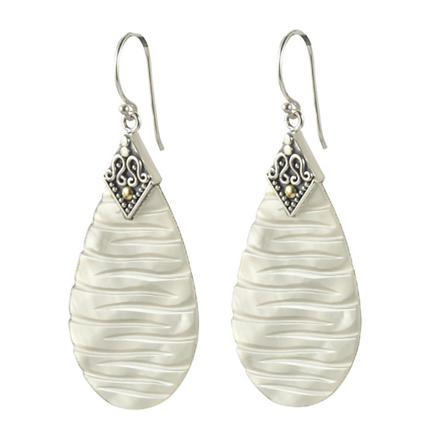 Bali Sterling Silver + 18K Carved Mother of Pearl Earrings