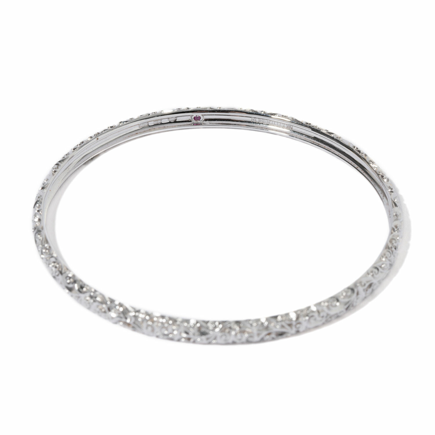 18k White Gold Etched Bangle Bracelet // 8" // New