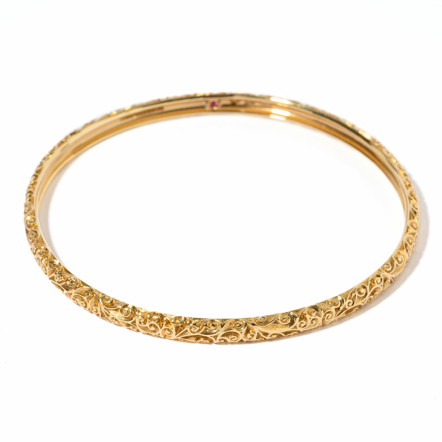18k Yellow Gold Etched Bangle Bracelet // 8" // New