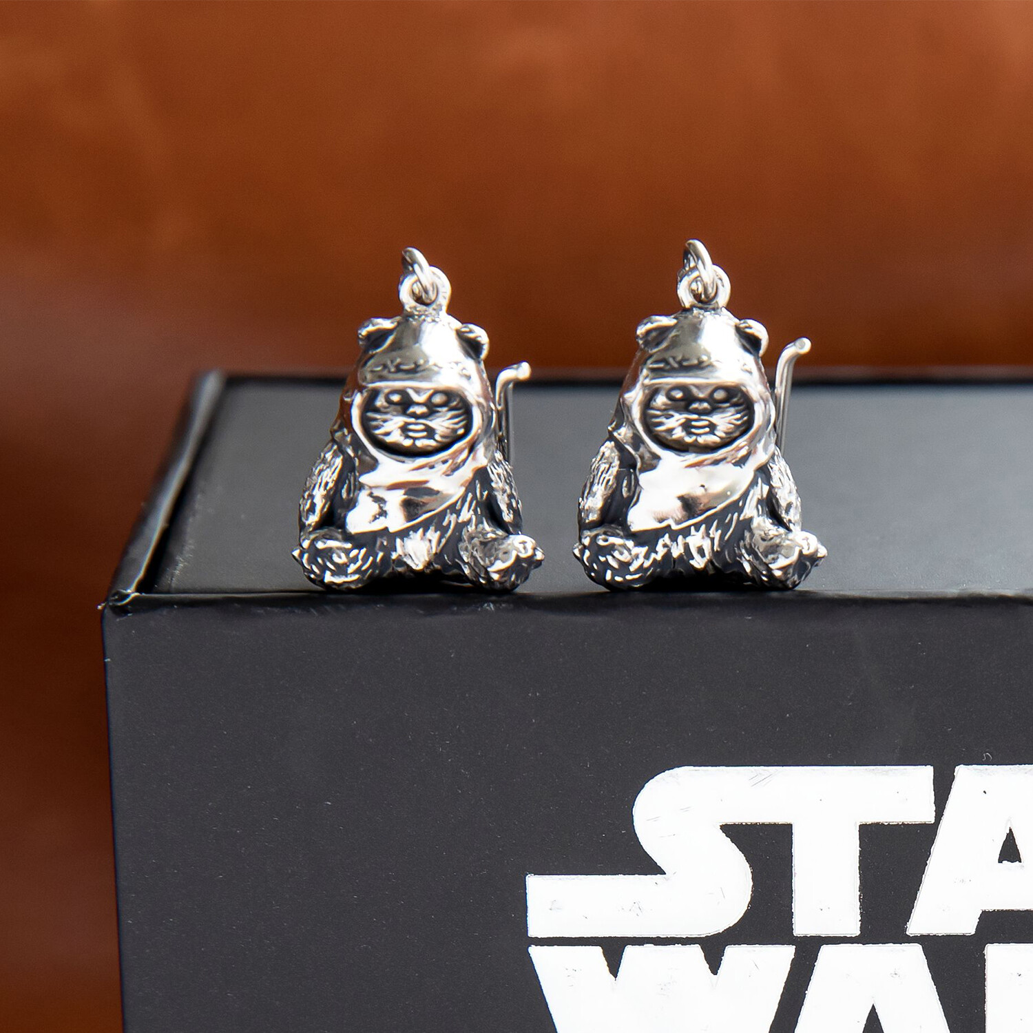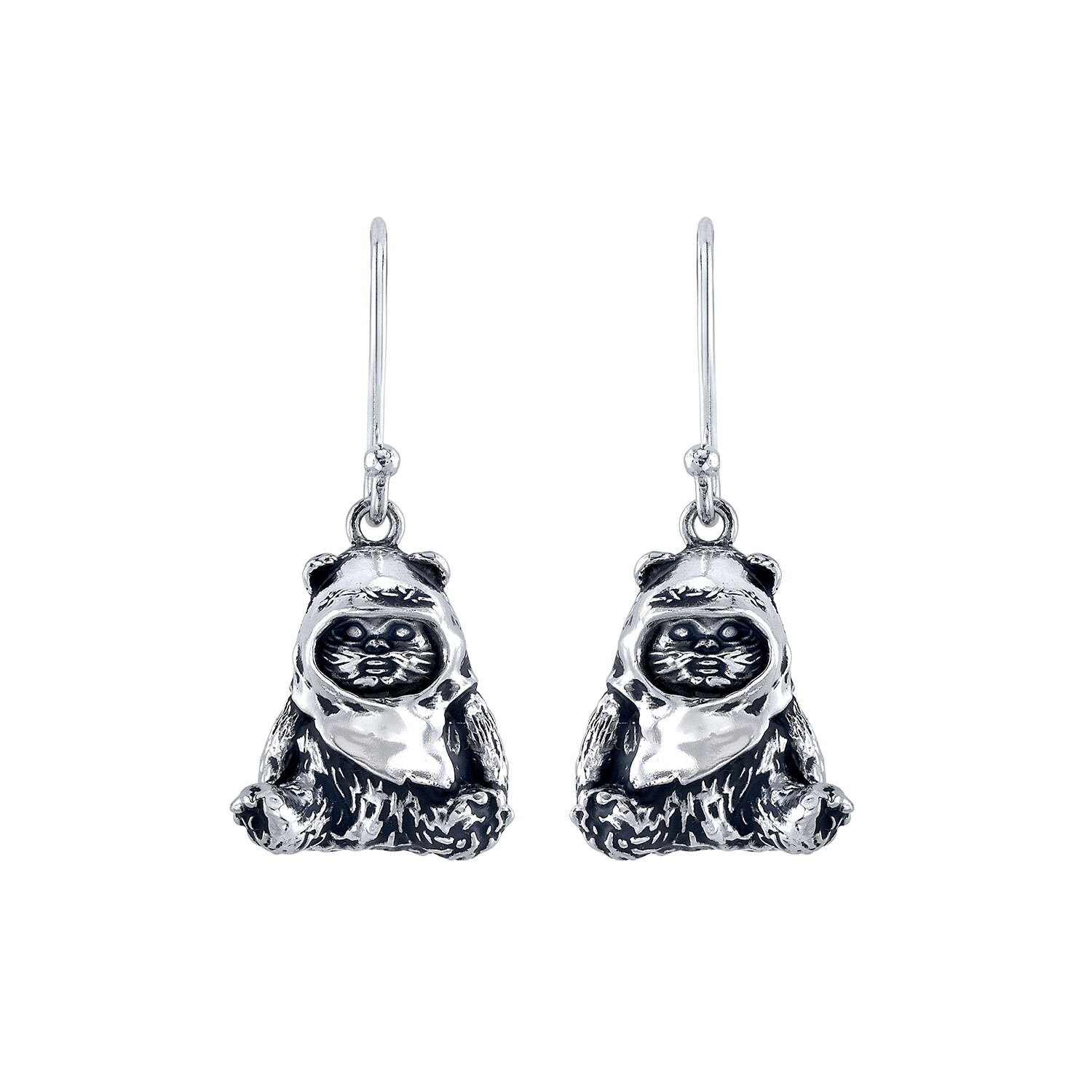 Sculpted in solid sterling silver, Wicket the Ewok sits with legs outstretched. Antiqued to emphasize his adorable facial features and fur texture, these three-dimensional earrings hang from nickel-free sterling silver French hook ear wires and are comfortable for everyday wear.