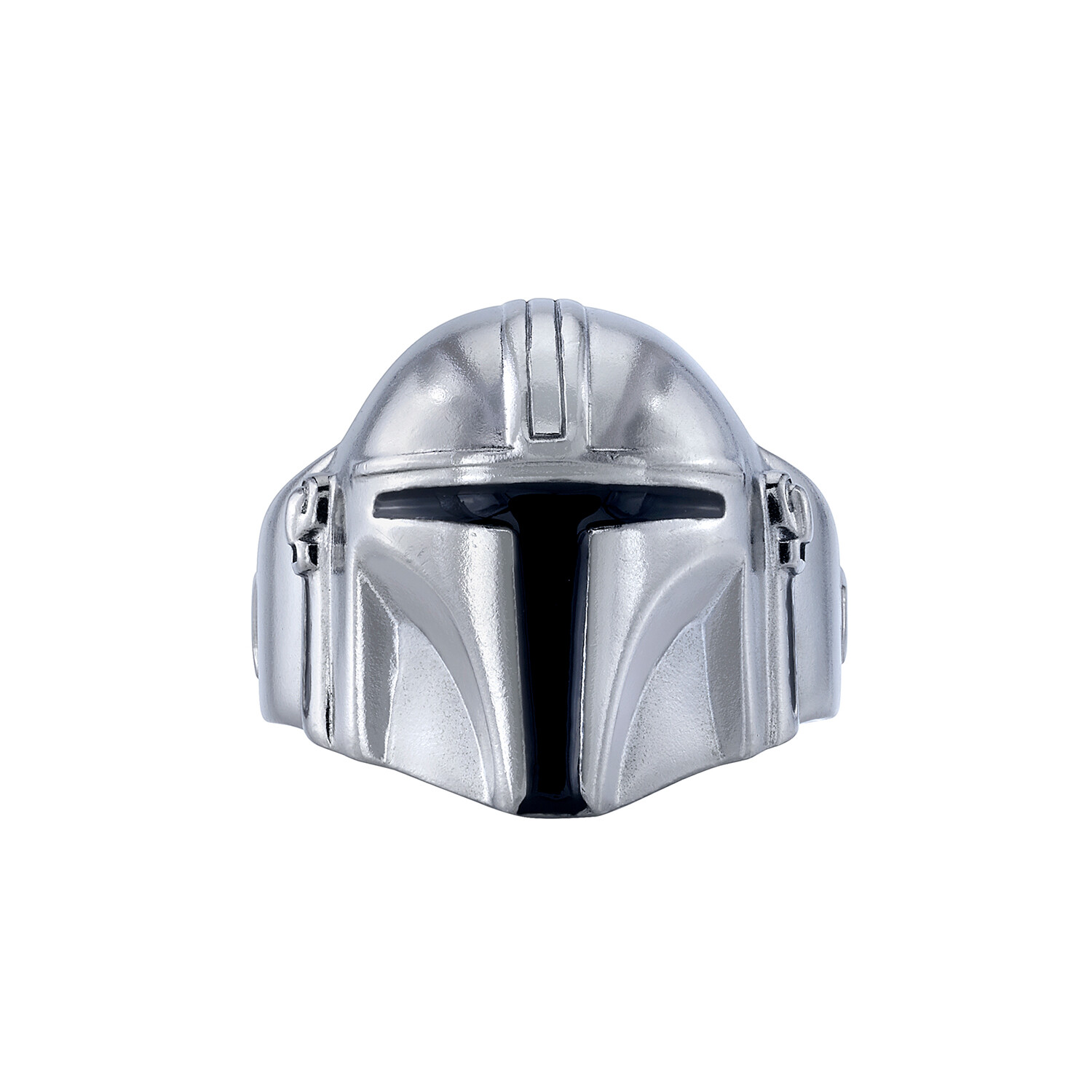 Sculpted in sterling silver and plated in polished gunmetal rhodium, the Mandalorian Helmet Ring is an homage to Din Djarin, the legendary bounty hunter and lead character of the hit series The Mandalorian. Enhanced with hand painted black enamel, the ring features Mando’s helmet and along the band, the mantra "This is the way". Three-dimensional, the domed helmet is hollowed beneath to be lightweight and comfortable for everyday wear.