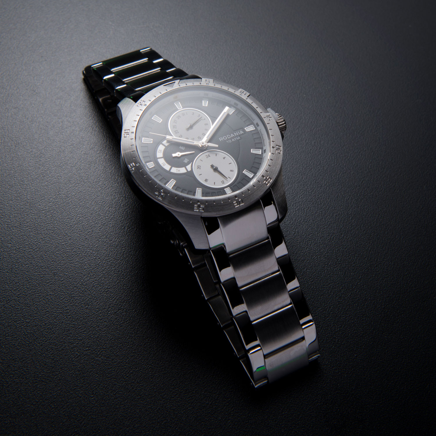 Running, walking, or on wheels... the world is yours with the Elements Multi, a gem of the Rodania Energy collection. Go beyond your boundaries with a watch that reflects your energy and style. Powered by a Miyota quartz movement, it's a gorgeous piece for the man on the go.