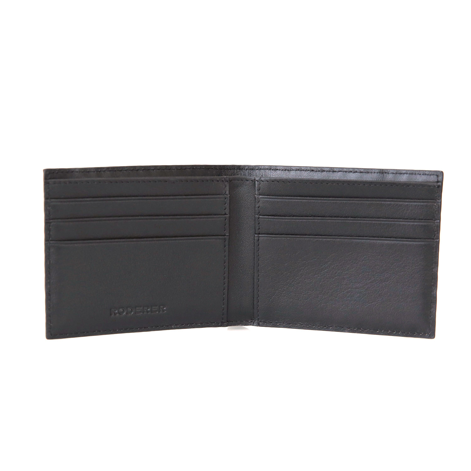 The 6 Card Bifold is made of full grain woven cowhide leather with an exceptional Roderer finish, a metal Roderer crown in polished silver finish on front flap, 6 card compartments, 2 flap pockets, and 1 banknote sleeve. Wherever your travels take you, you'll always be sleek and stylish.