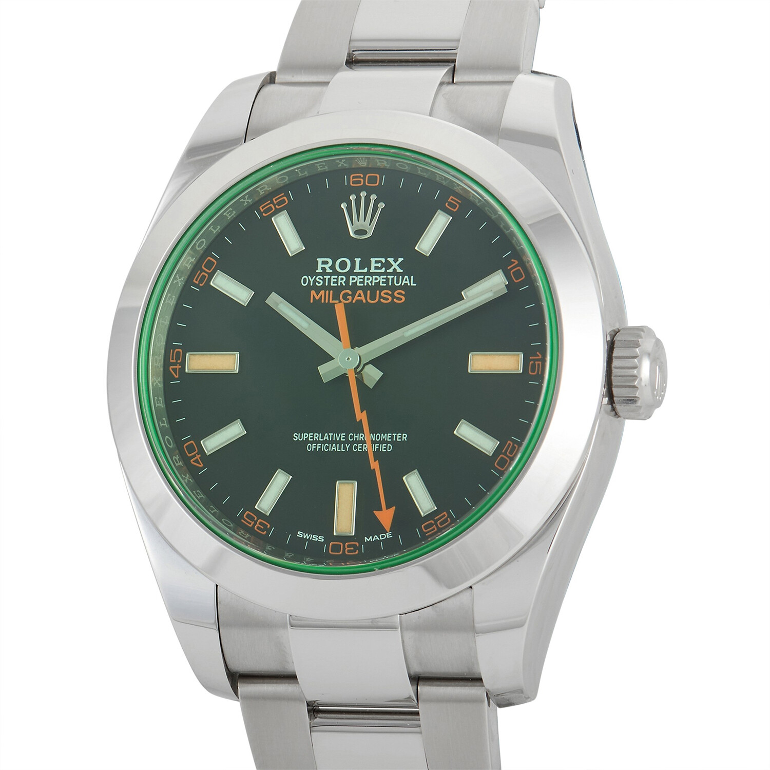 The Rolex Milgauss Automatic is a unique watch in Rolex's line. Designed specifically for scientists and engineers, and known for being worn by scientists working at CERN in Geneva, the watch can withstand magnetic fields up to 1,000 gauss thanks to a ferromagnetic shield inside the case, protecting the intricate movement.