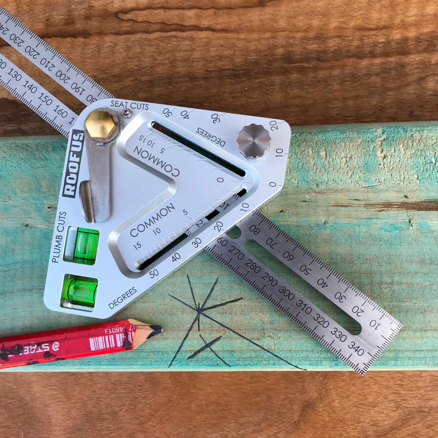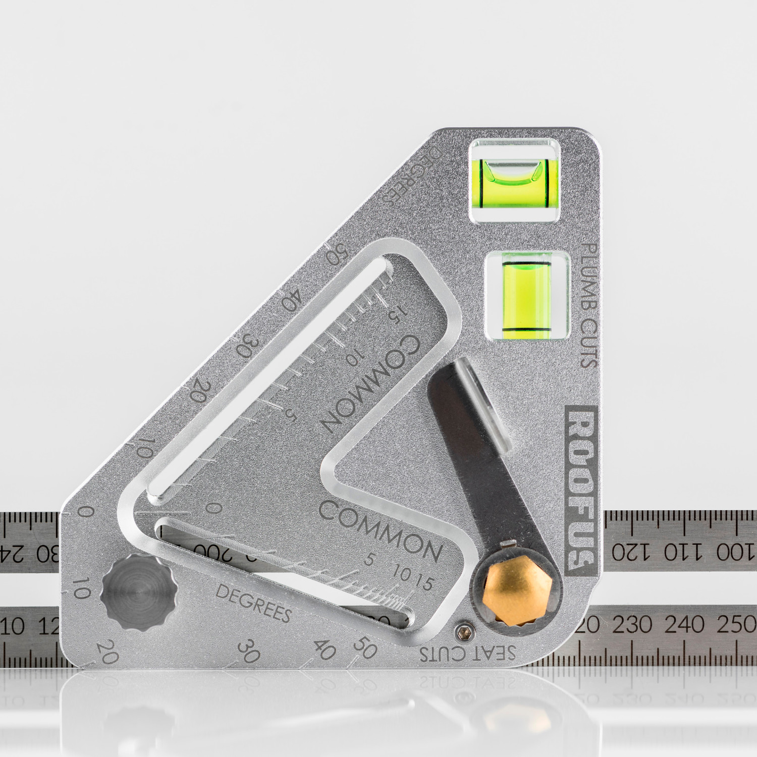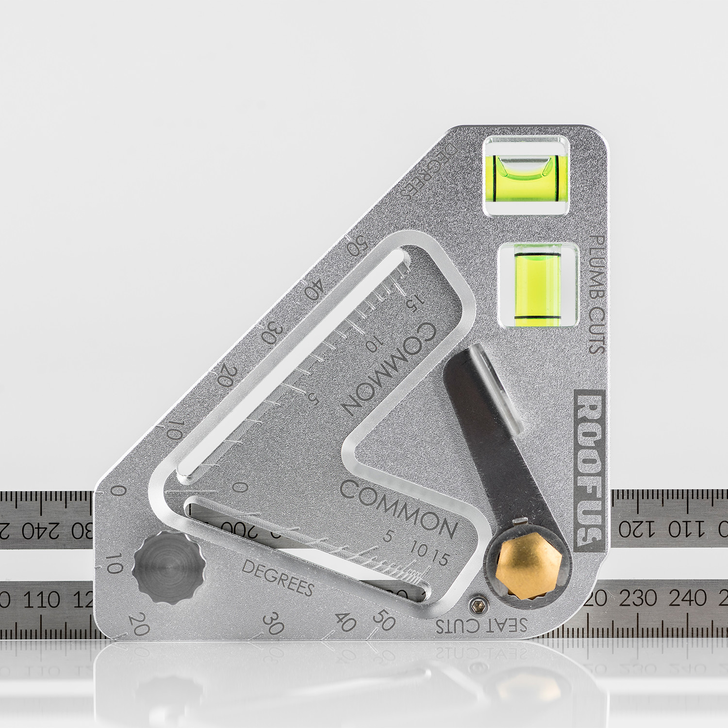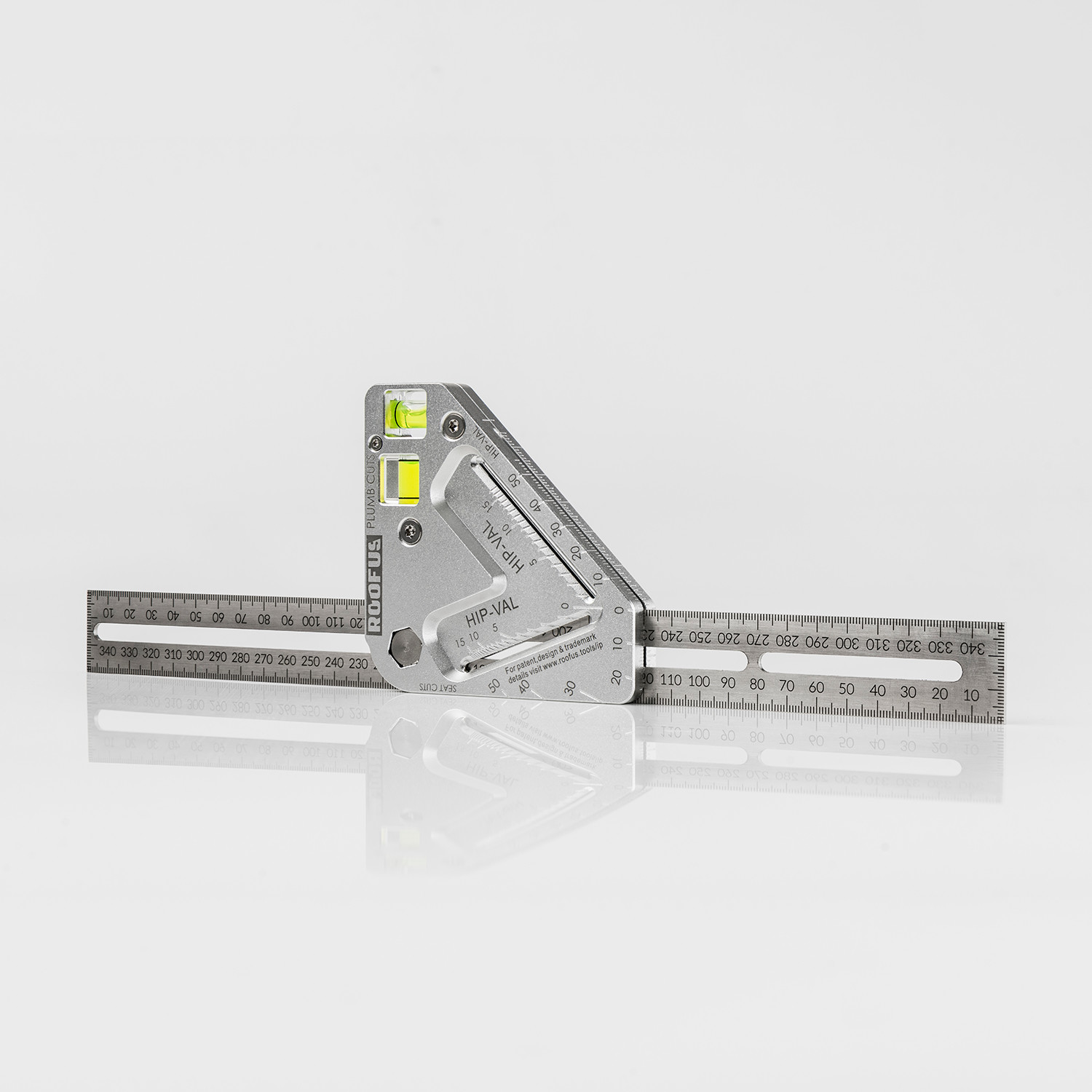 Roofus is a building tool that combines the features of a combination square, bevel, protractor, level and speed square in one easy to use tool. The blade can be extended or retracted to the required depth and rotated to the required angle before being held in position using the pivot lock. The square lock can even be used to set the blade at 90 degrees before locking the depth with the pivot lock.