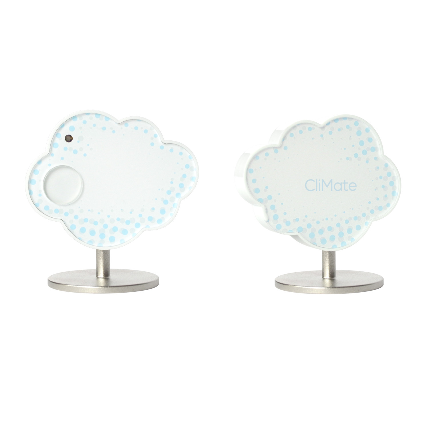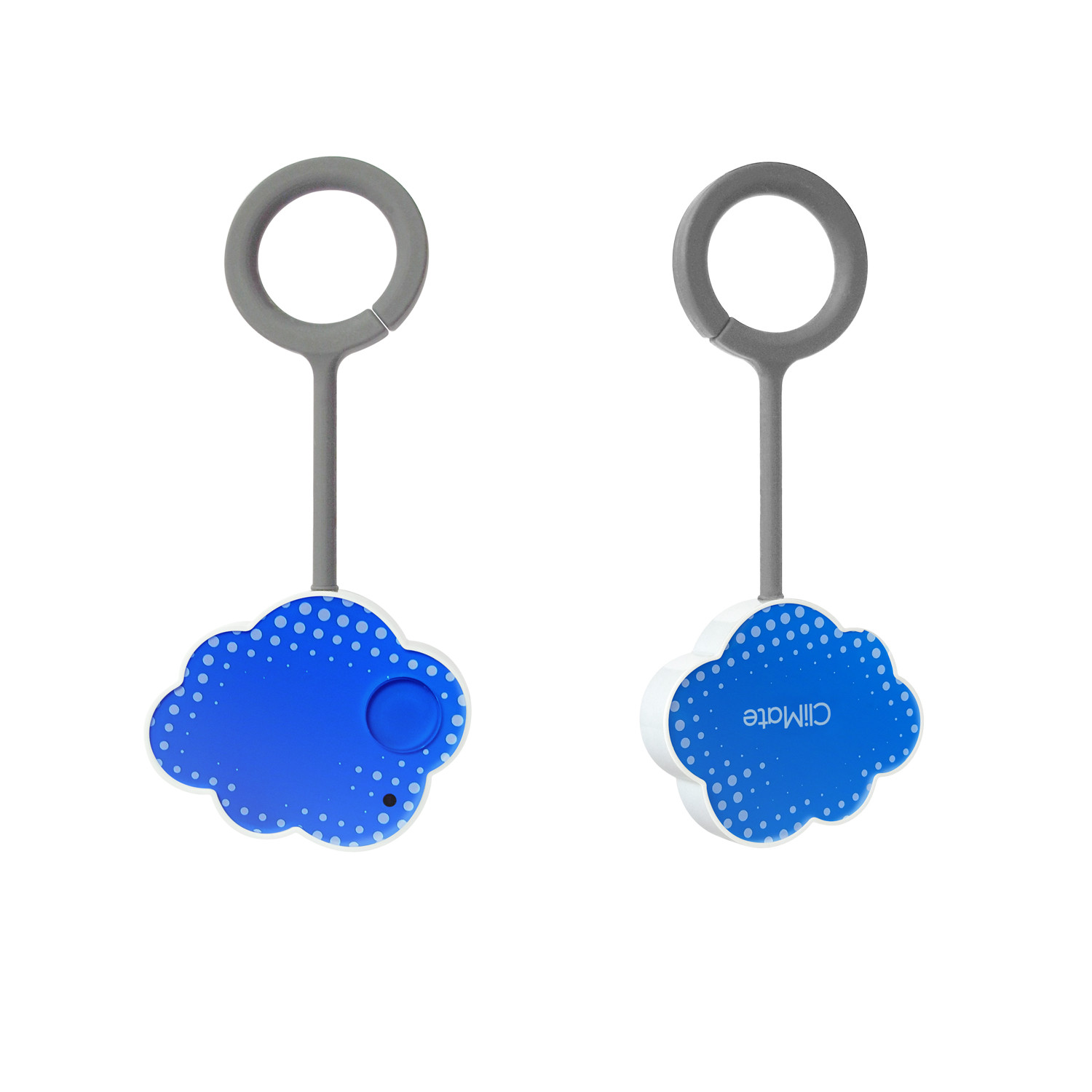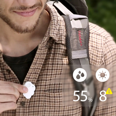 CliMate is a tiny, portable cloud-shaped environment tracker that measures humidity, ultraviolet light, and temperature of your immediate environment, wherever you are. CliMate can be kept on a stand inside a room, or worn on a keychain so you can take it wherever you go.