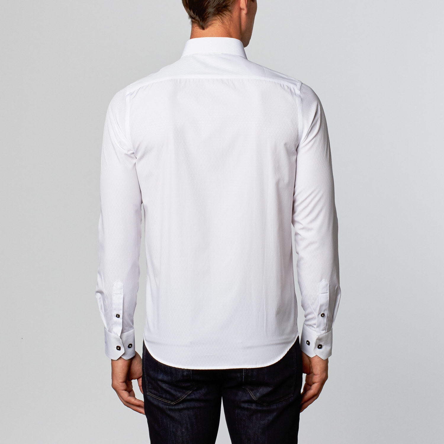In the modern European slim fit, this edgy dress shirt will make you want to stroll the streets of Milan or Rome and show off the exceptional European craftsmanship and stylistic flair that have come together in this versatile piece. Lightweight and lean-fitting, it's the easiest way to add a little Italian panache to your wardrobe.