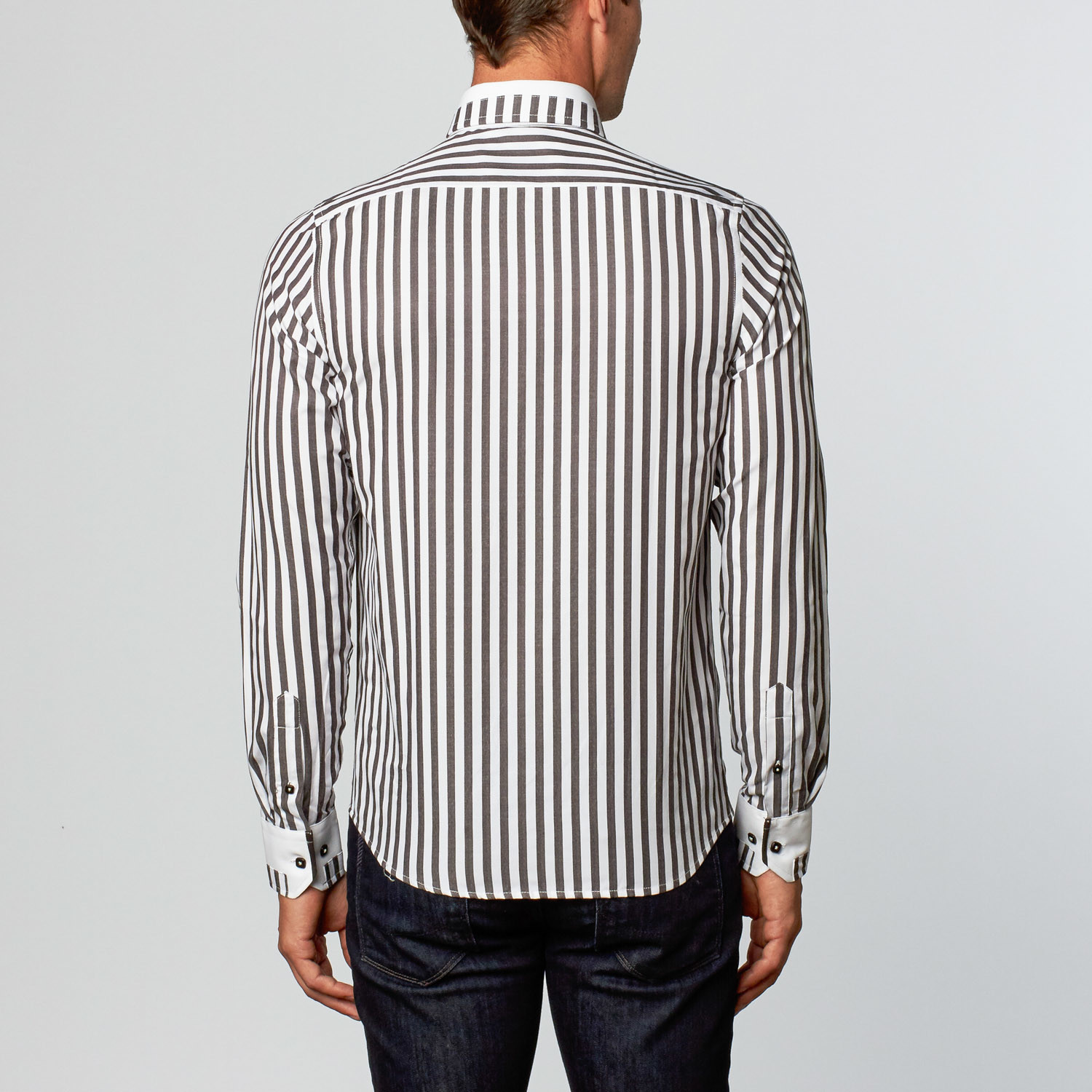 In the modern European slim fit, this edgy dress shirt will make you want to stroll the streets of Milan or Rome and show off the exceptional European craftsmanship and stylistic flair that have come together in this versatile piece. Lightweight and lean-fitting, it's the easiest way to add a little Italian panache to your wardrobe.