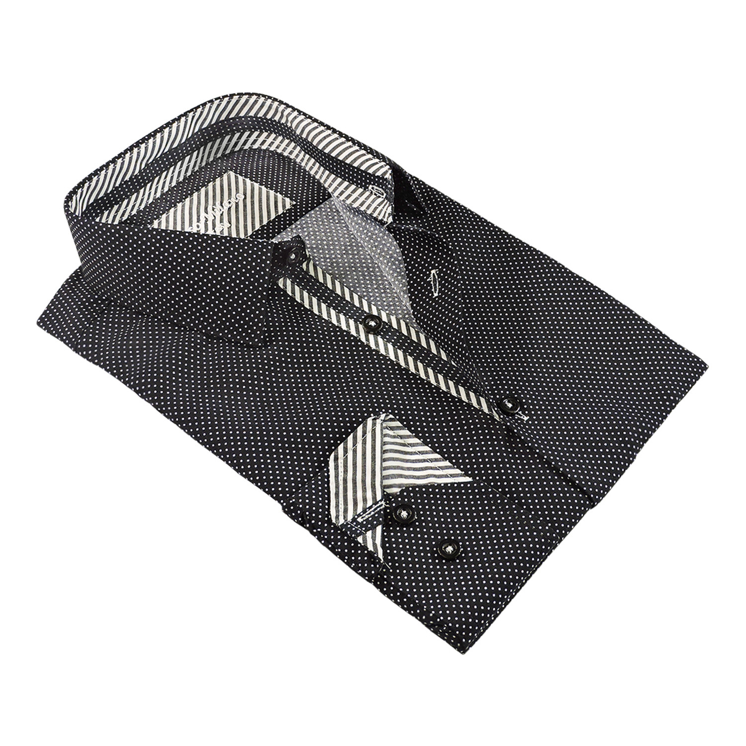 Polka Dot Striped Trim Button-Up Shirt // Black