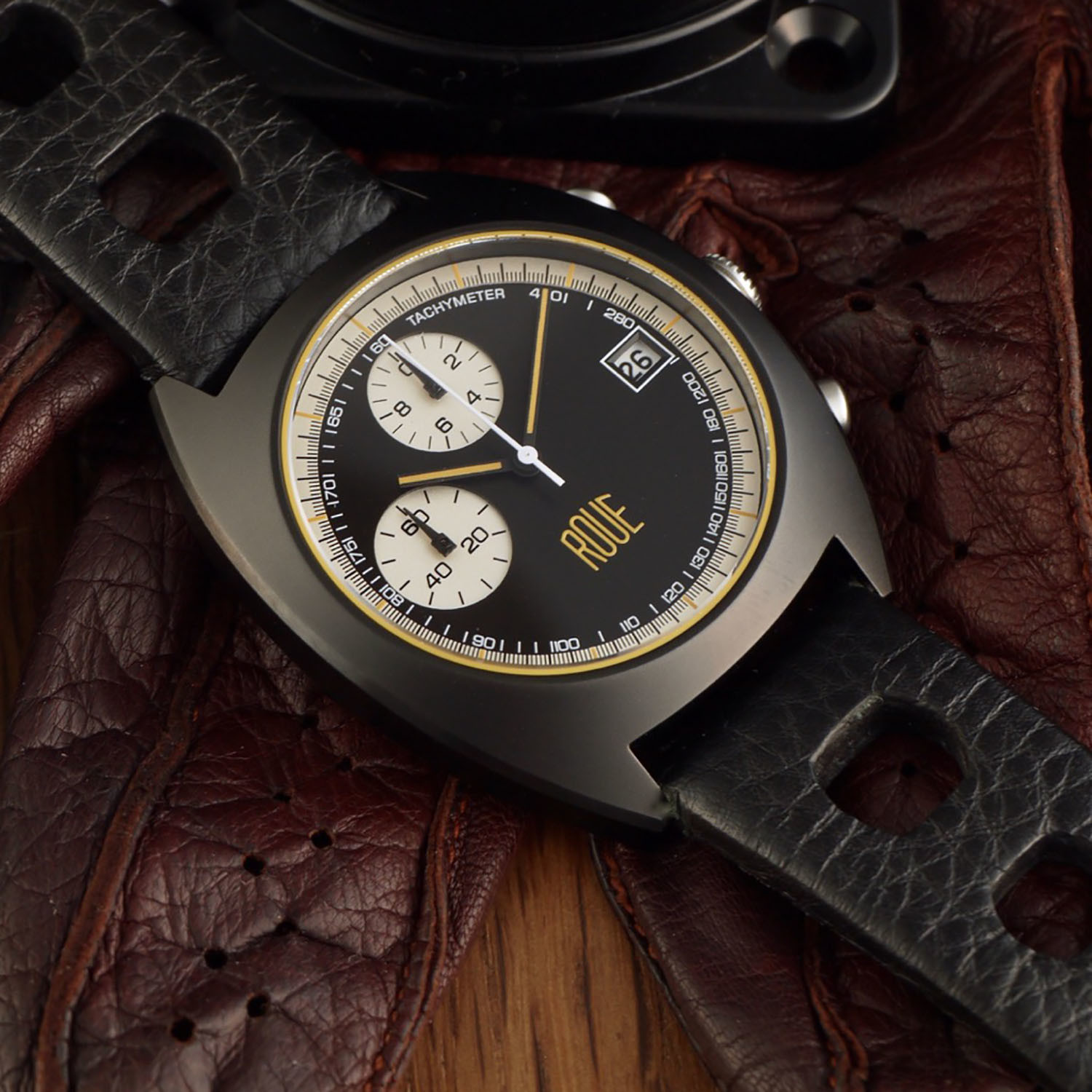 A tribute to those who make their mark, the CHR Chronograph is influenced by the 1970s. It draws from the golden days of Hunt, Lauda and Fittipaldi, and iconic motorsports cars like the psychedelic Porsche 917 and Ferrari 512M. Or the quirky Lancia Stratos and the concept Mercedes C111, preferably in orange. It's an homage to the first decade of the modern automobile era.