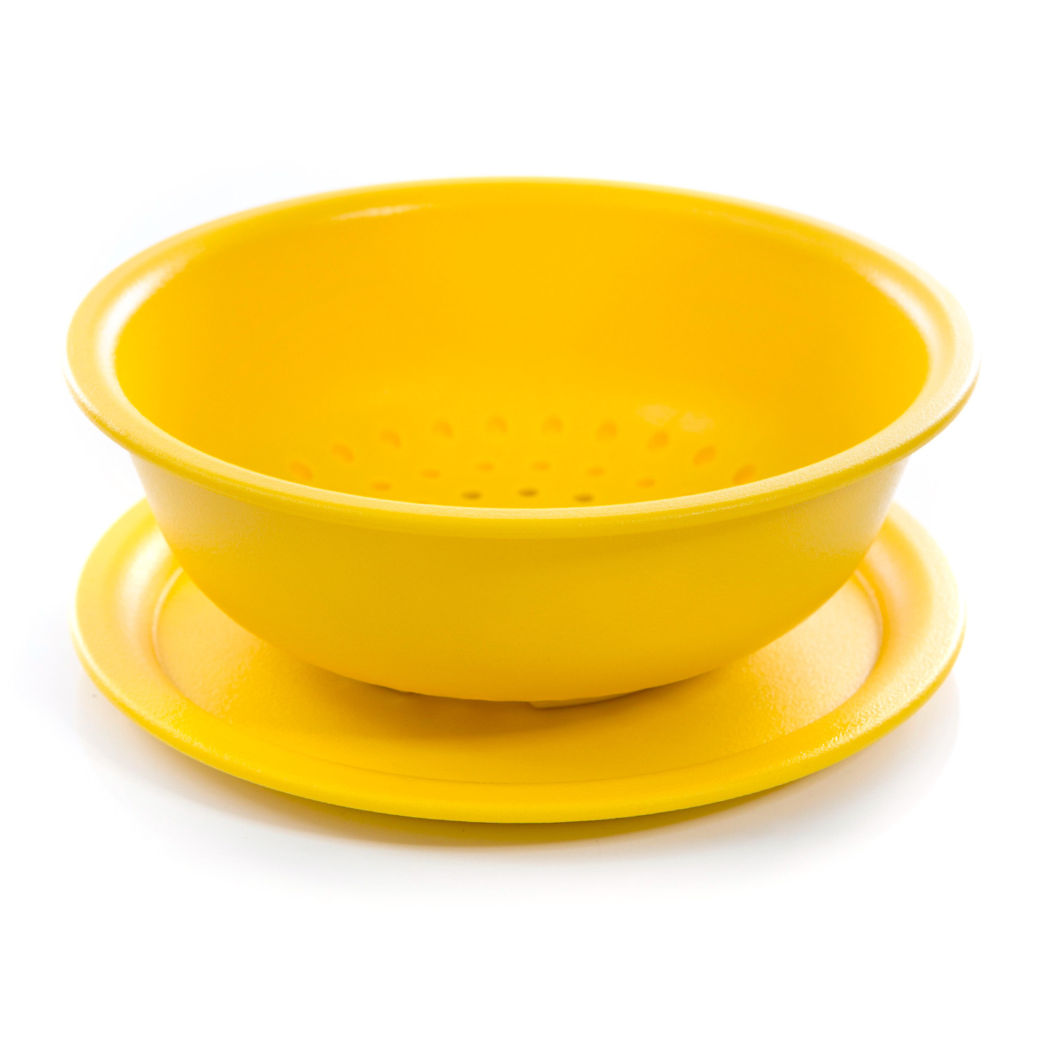 The Fresh Berry Bowl is a stylish, compact colander that is designed for both rinsing and serving your fresh summer fruit without going through separate processes. It consists of two components; the serving colander itself, and a matching draining coaster which also acts as a lid/cover.