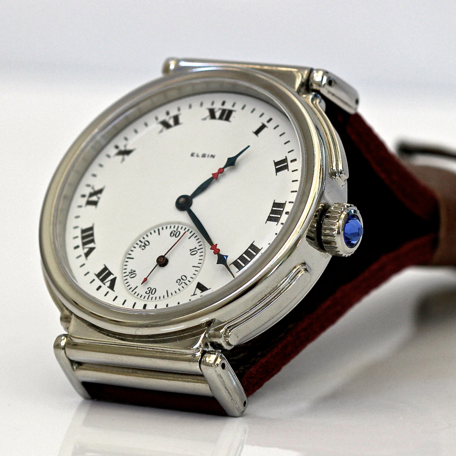 — Dial: Antique Elgin Enameled Dial With Roman Numeral Numbers. Antique Blued Steel Cathedral Hands.